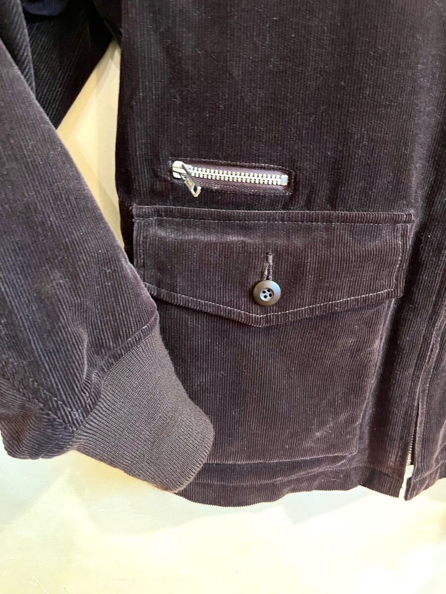 DIGSのコーデュロイジップアップジャケット。こげ茶色です。裏地はうすいフリースみたいな素材です。