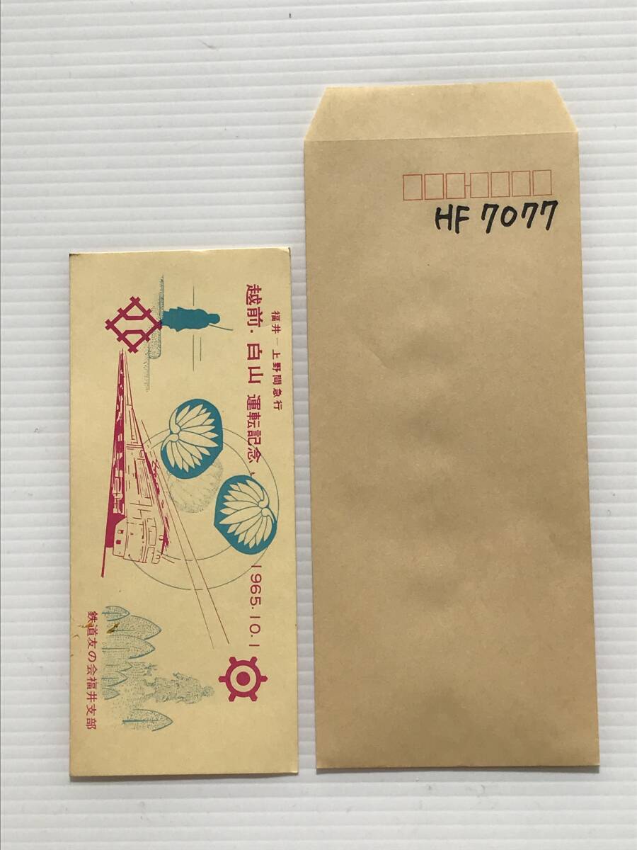 昔の切符 記念券 越前・白山運転記念 福井ー上野間急行 1965年10月1日 鉄道友の会  HF7077   くるり岸田繁