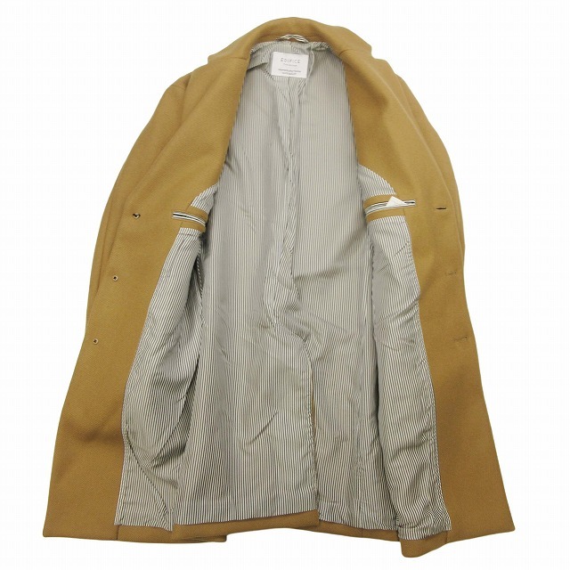 【仕様】品番/15020300100030 原産国/中国 代理店表記/株式会社ルドーム ------------------- ウール100%の上質な生地に圧力をかけてフェルト状にした"100s アヤメルトン"を使用したチェスターコート。 上品なキャメルカラーのシンプルなデザイン。 裏地にはストライプ柄を配置し、さりげないアクセントになっています。