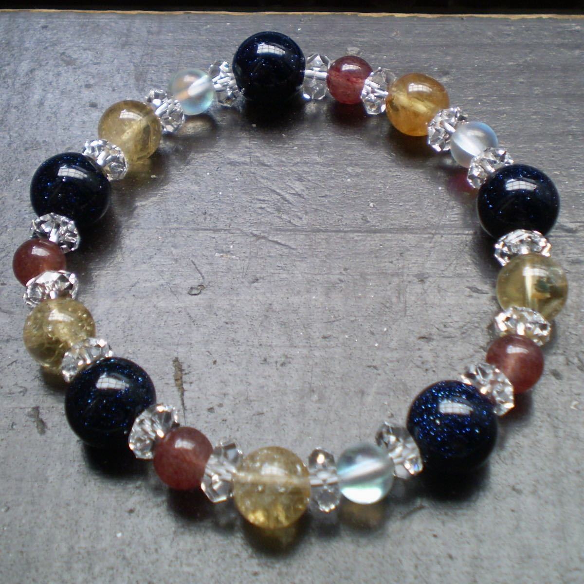 ゴールドストーンxシトリンxモスコバイトブレスレット 天然石 パワーストーン