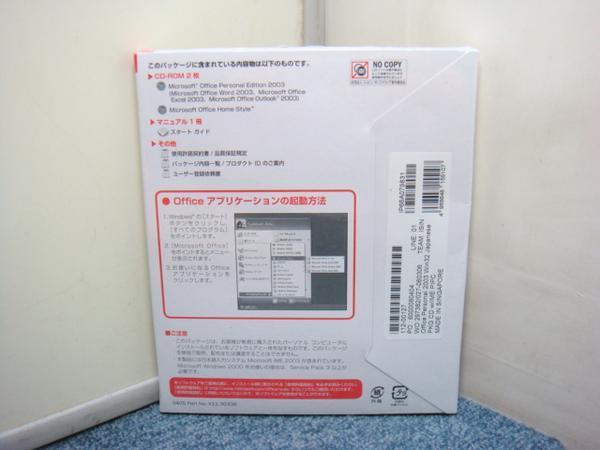 | ★商品説明★ | 仕様 ※管理番号:K3486B マイクロソフト オフィス パーソナル エディション 2003 Microsoft Office Personal Edition 2003 Word ワード 2003 Excel エクセル 2003 Outlook アウントルック 2003 Home style ホーム スタイル 未開封品プロダクト キー 付き ※記載されたもの以外は付属いたしません。 付属商品特殊性がございますので、返品、インストール等の対応を行っておりません。よくお考えになった上でご入札ください。 |