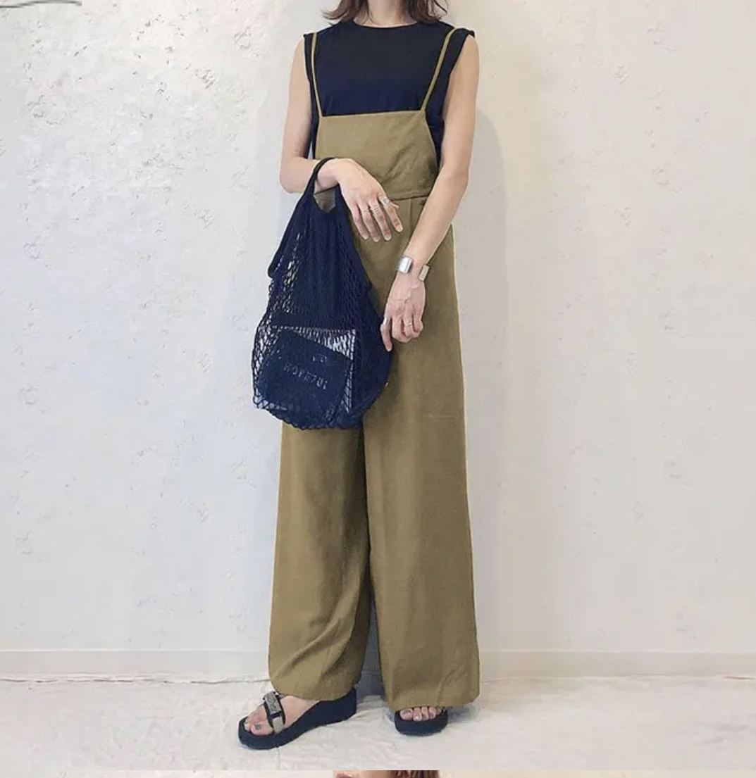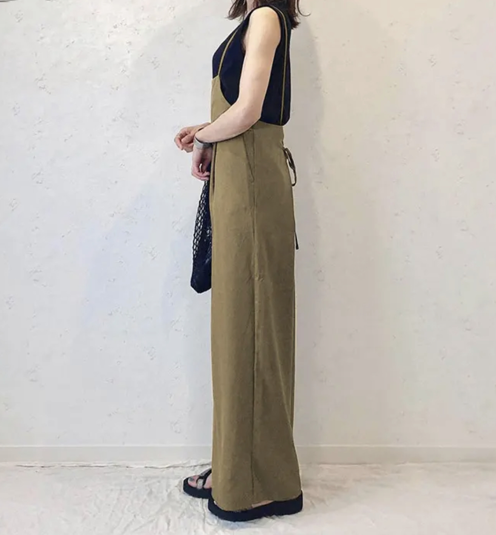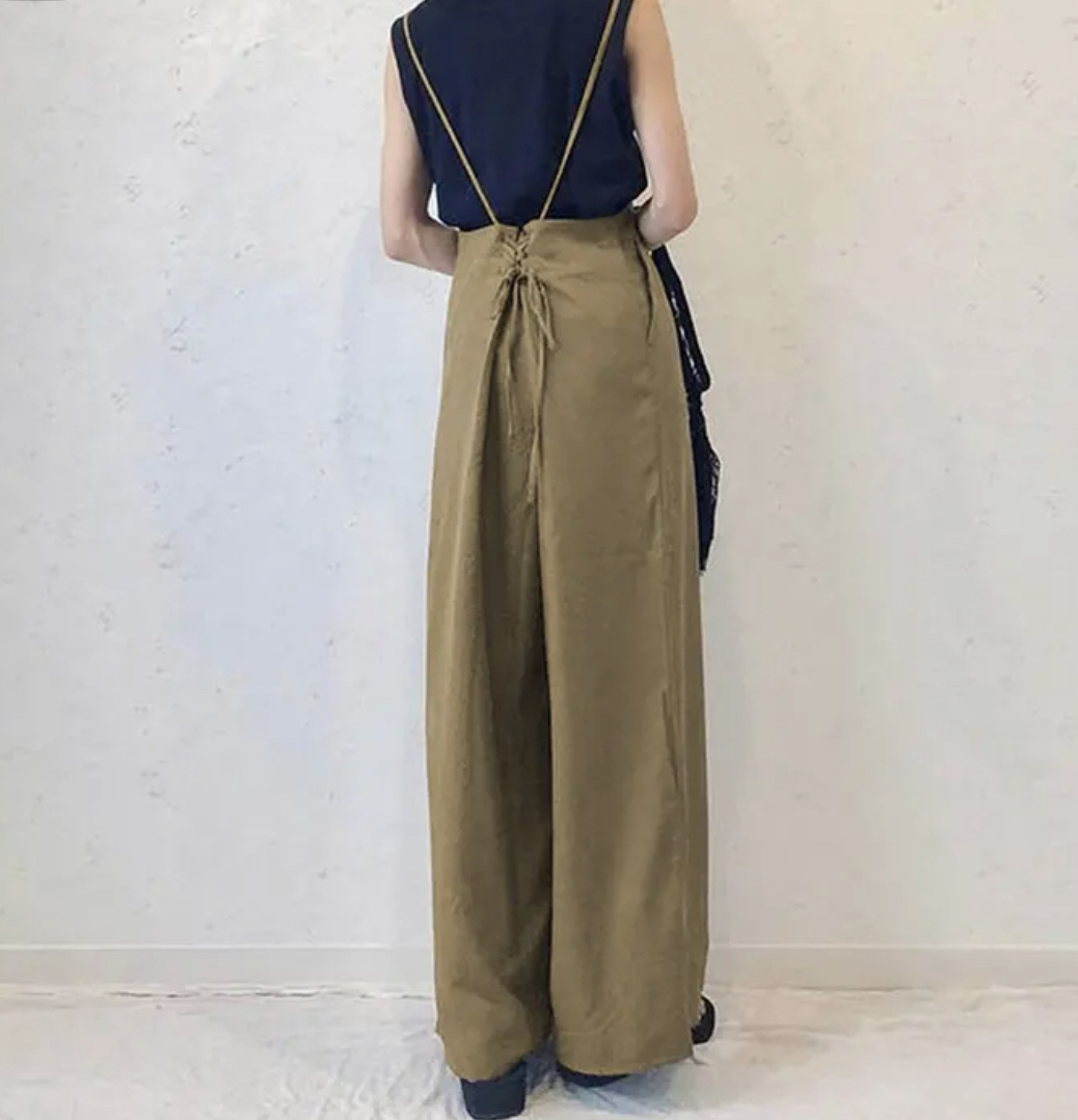 【新品】オールインワン パンツ カーキ ブラウン ゆったり サロペット フリーサイズ