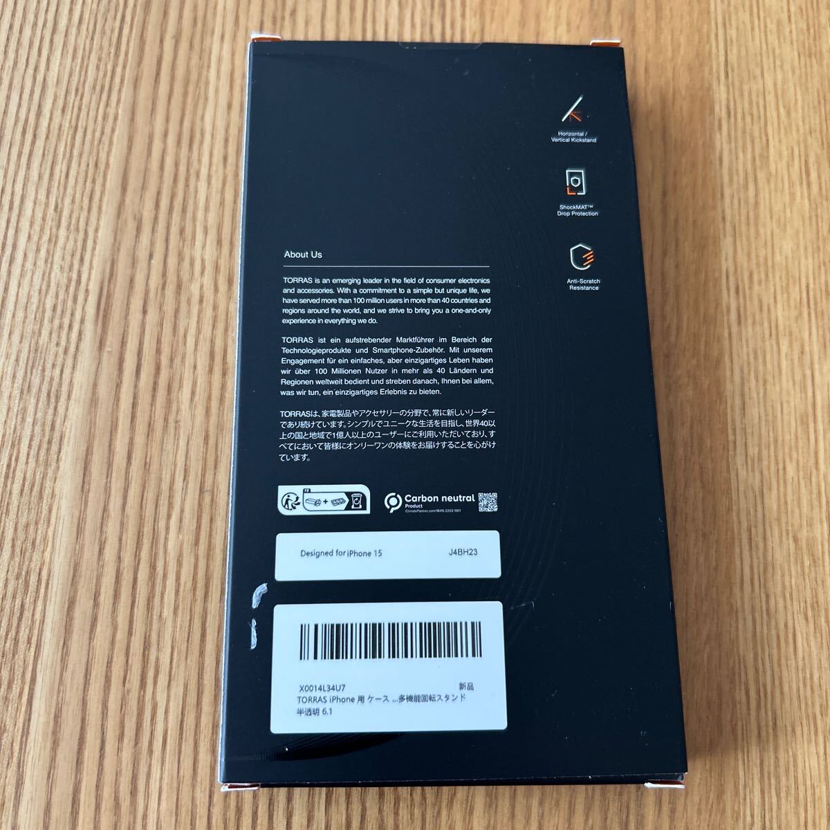 iPhone 15用ケース 多機能回転スタンド 半透明 6、1 ブラック