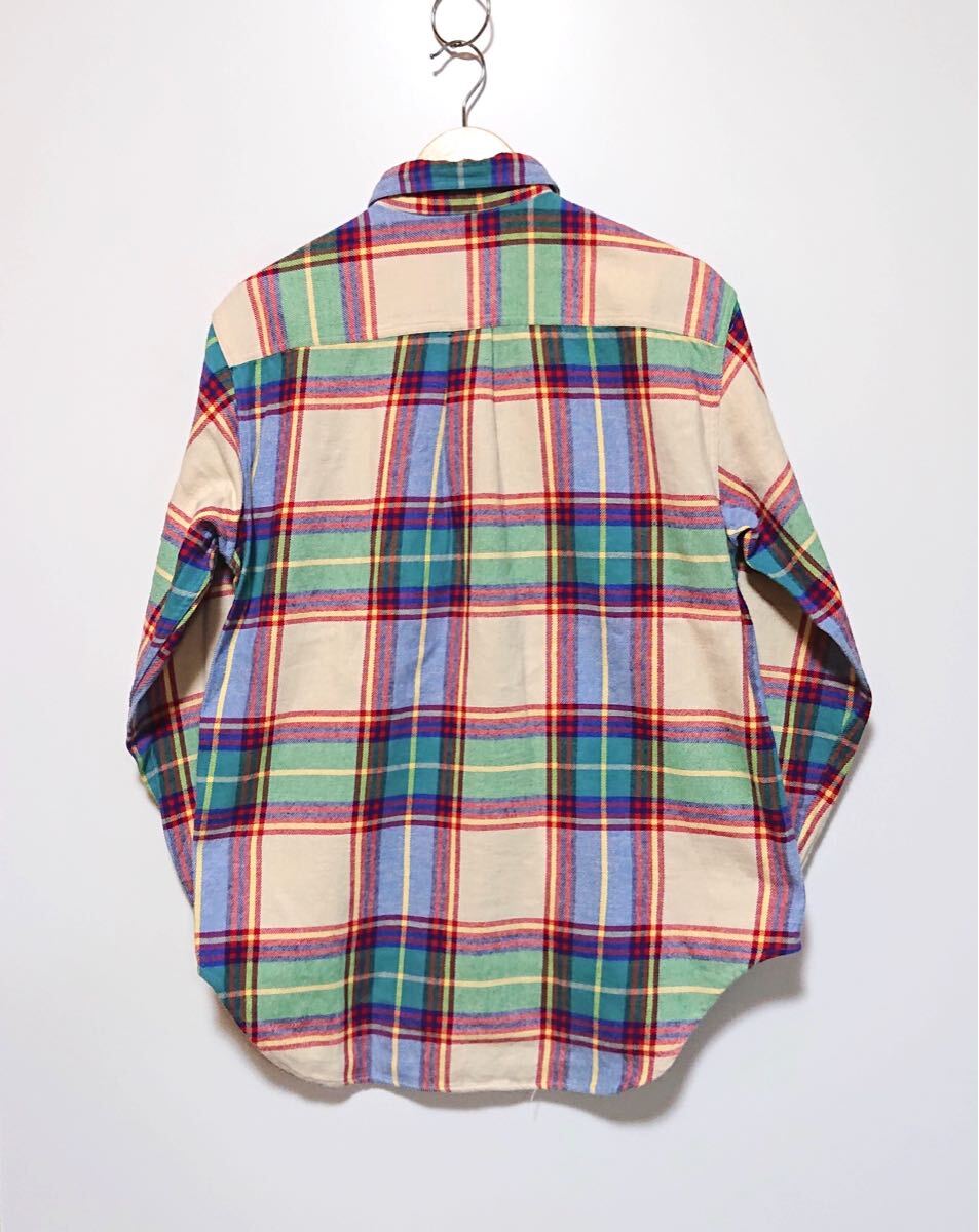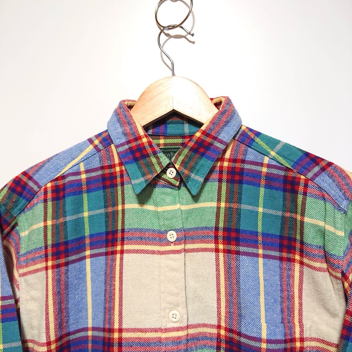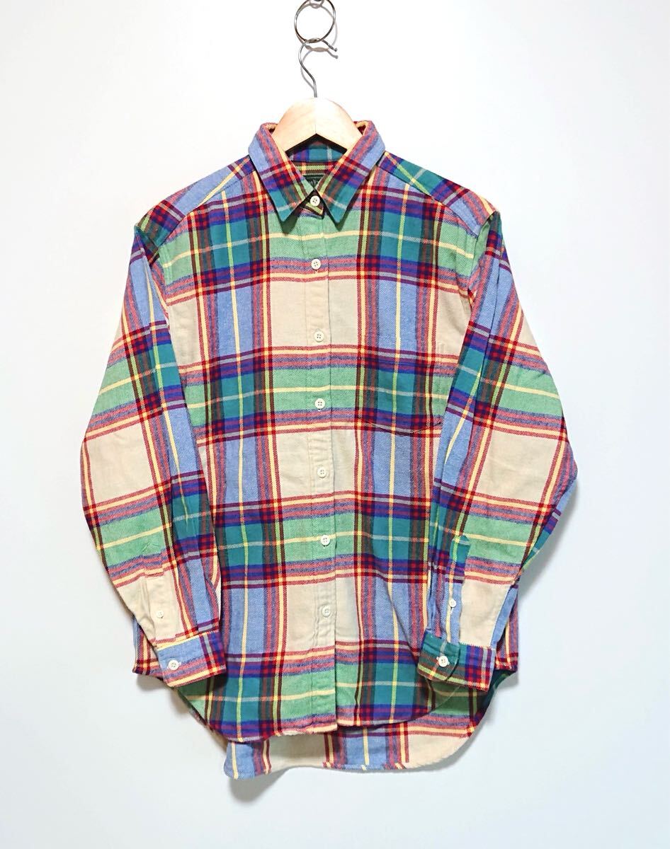 h1889gg 日本製 NEWYORKER ニューヨーカー サイズ9R (M位) 長袖シャツ チェック柄 オフホワイト×水色×グリーン×ブルー メンズ 綿100%