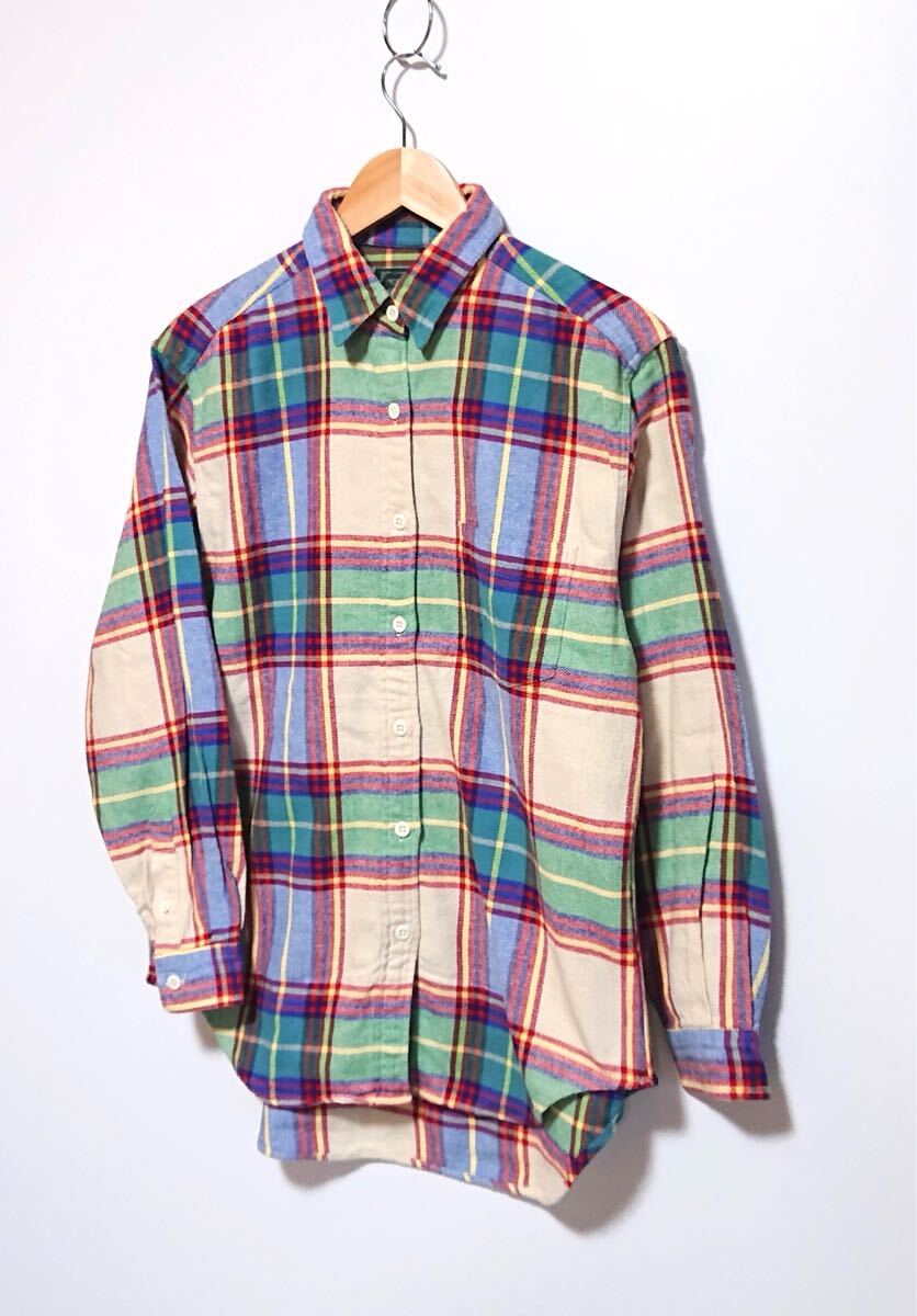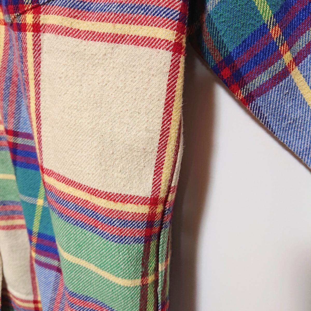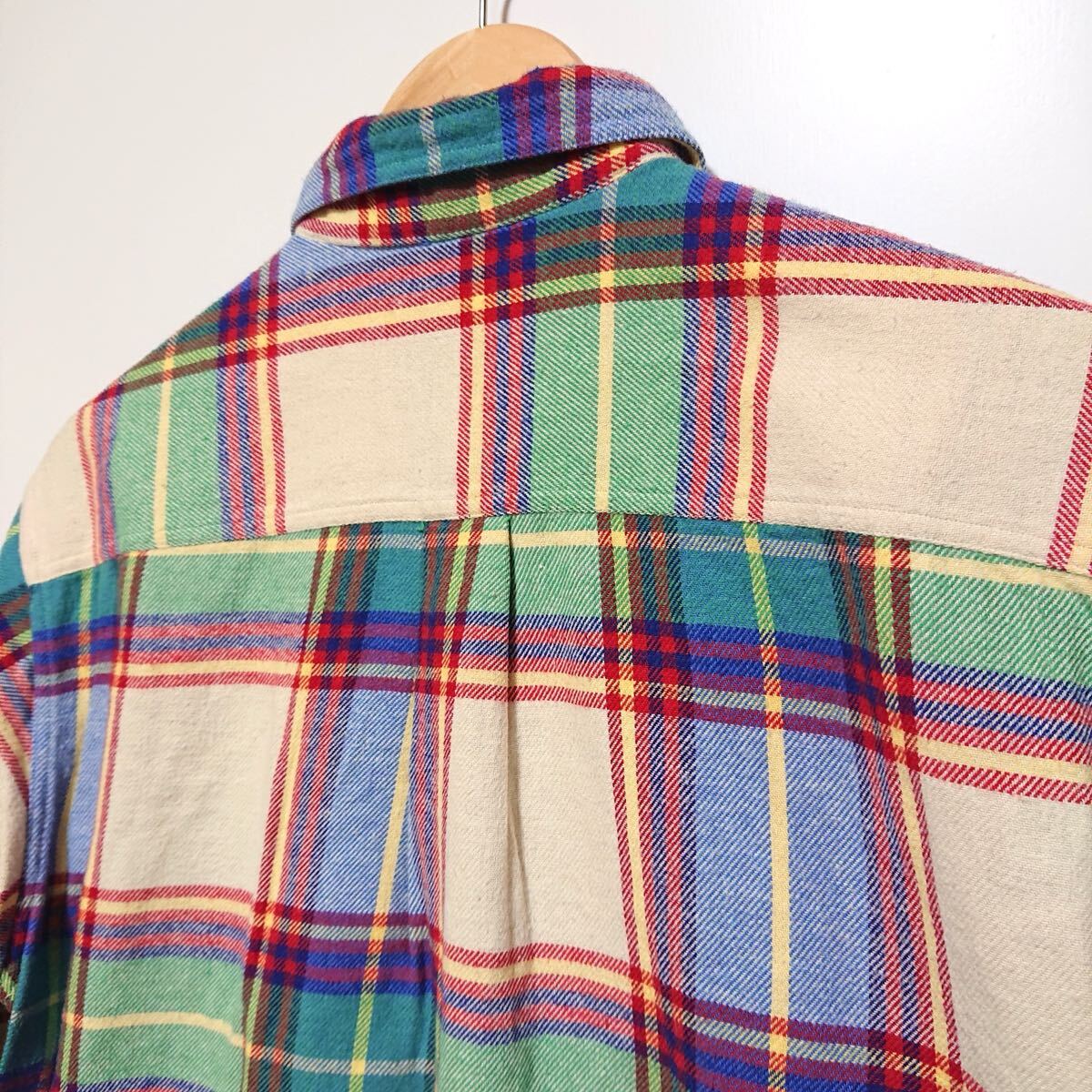 h1889gg 日本製 NEWYORKER ニューヨーカー サイズ9R (M位) 長袖シャツ チェック柄 オフホワイト×水色×グリーン×ブルー メンズ 綿100%
