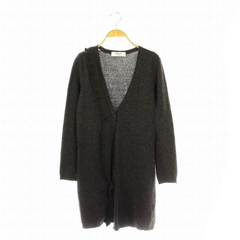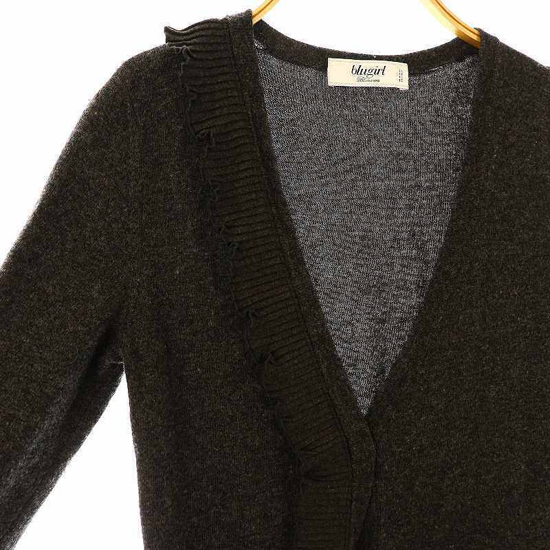 ブルーガール ブルマリン BLUGIRL BLUMARINE フリルロングニットカーディガン Vネック I40 ダークグレー /DF ■OS レディース