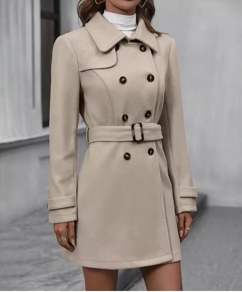 【Off White XL(JP-XXXL)】Mia-女性用長袖Vネックコート、プレーンボタン装飾、スキニーフィット、秋、冬、ビジネス