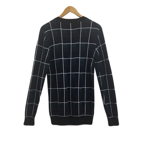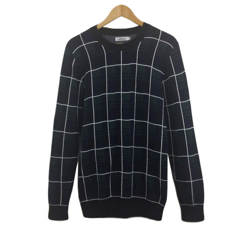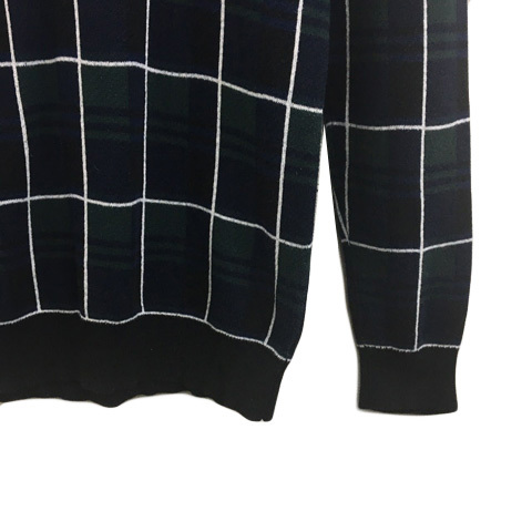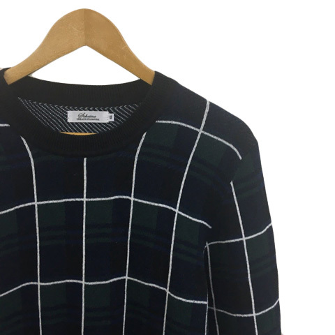 シャイナ SCHEINE セーター ニット プルオーバー クルーネック チェック 長袖 44 緑 紺 グリーン ネイビー メンズ
