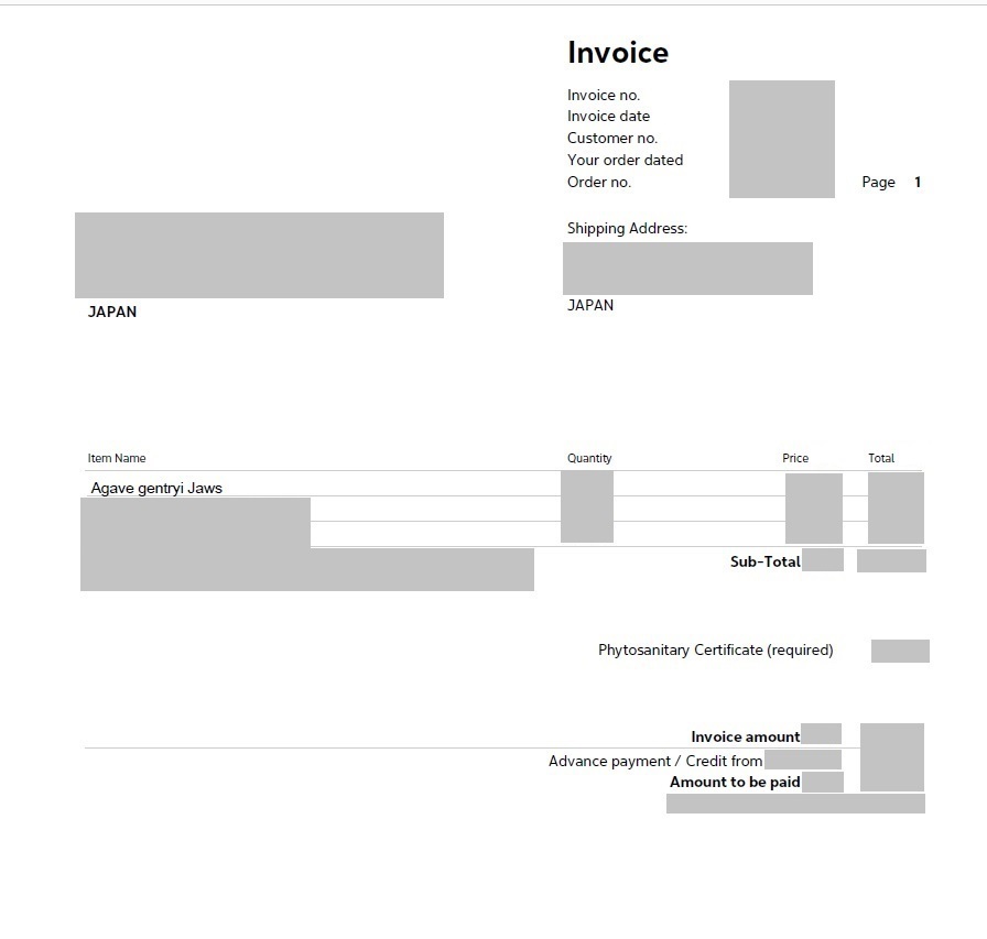 ※税関に提出したinvoiceも画像の通りございます。