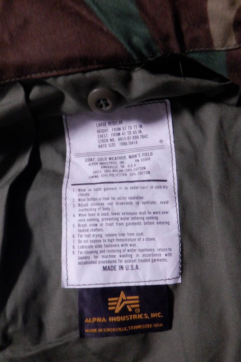 アルファ Alpha Industries USA製 M-65 フィールドジャケット 迷彩 カーキ L 未使用