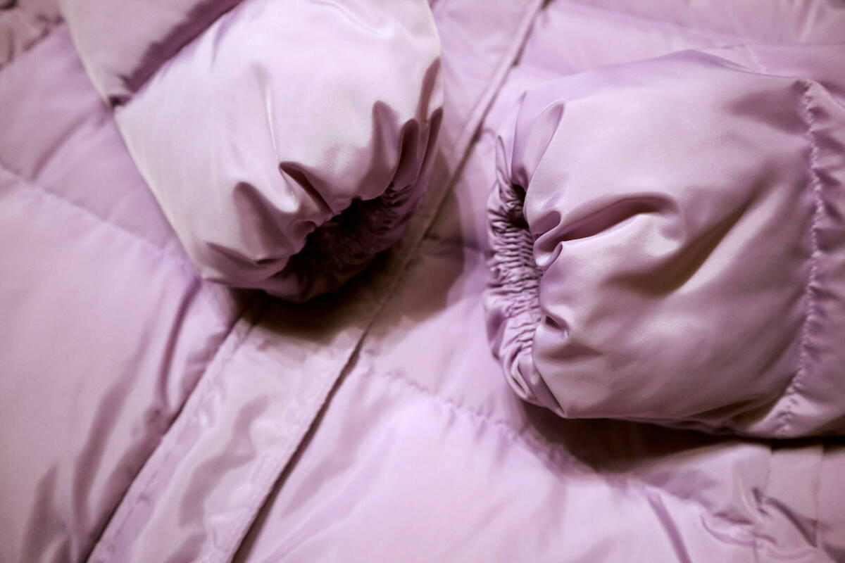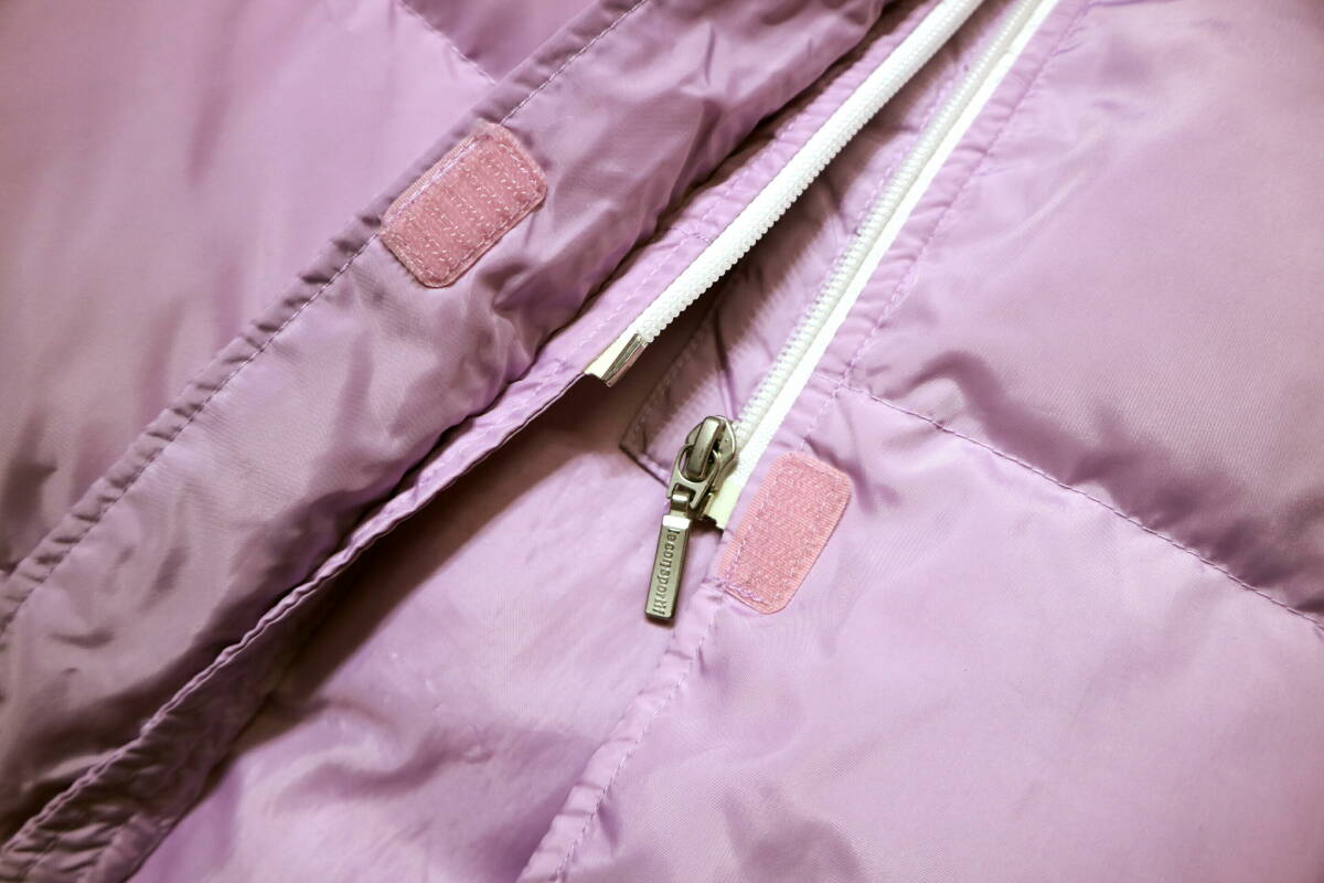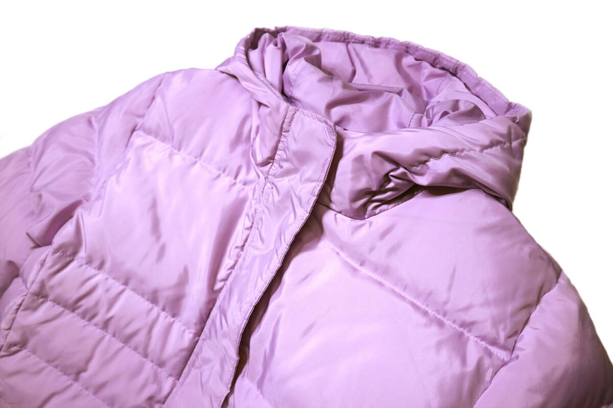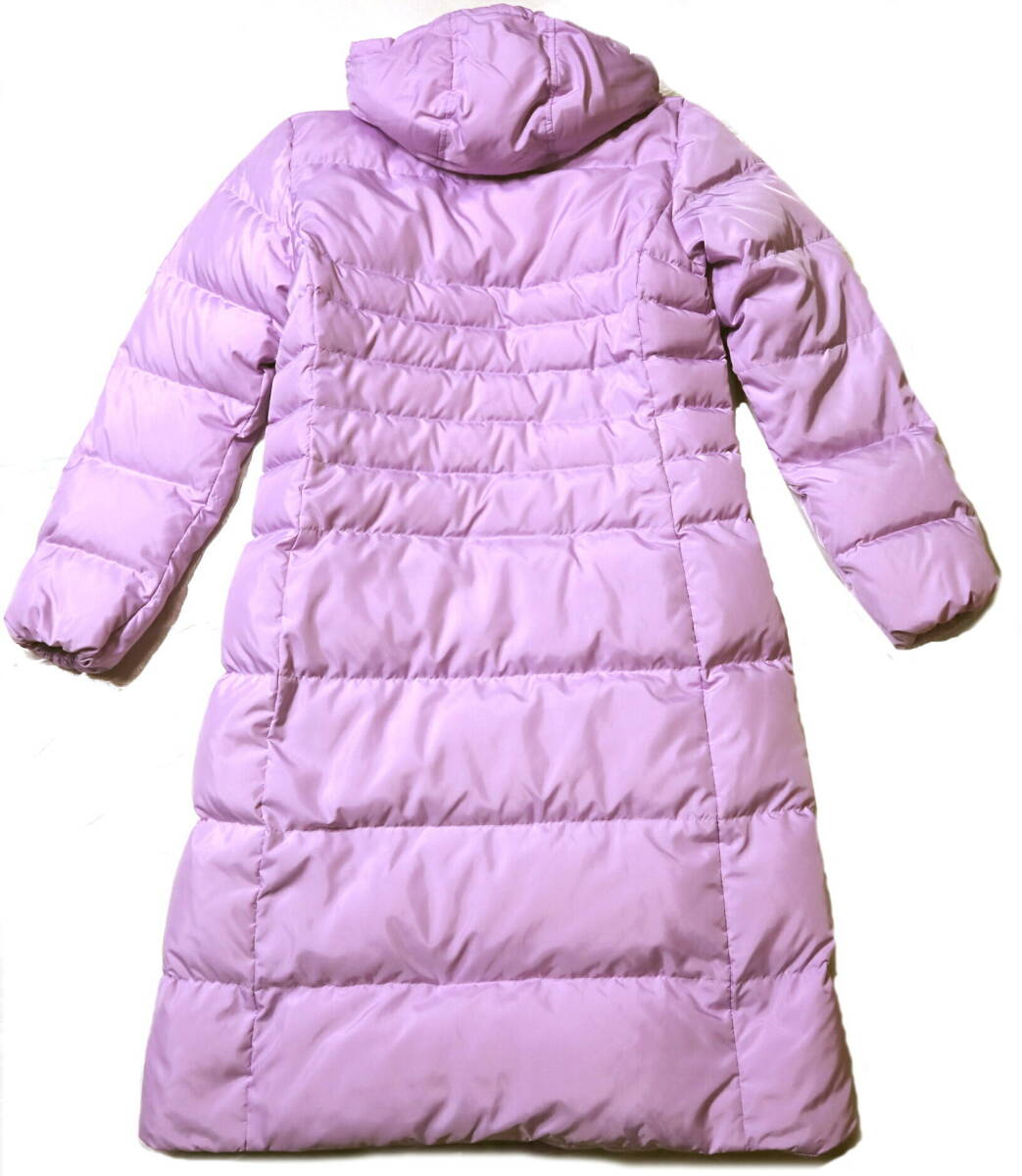 ・ダウンコートとしては適度にすっきりとした作りです。フードは一体型、内ポケットは付かない作りです。袖先先端の内側にゴム入り、ひざのすぐ下までの着丈で暖かです。