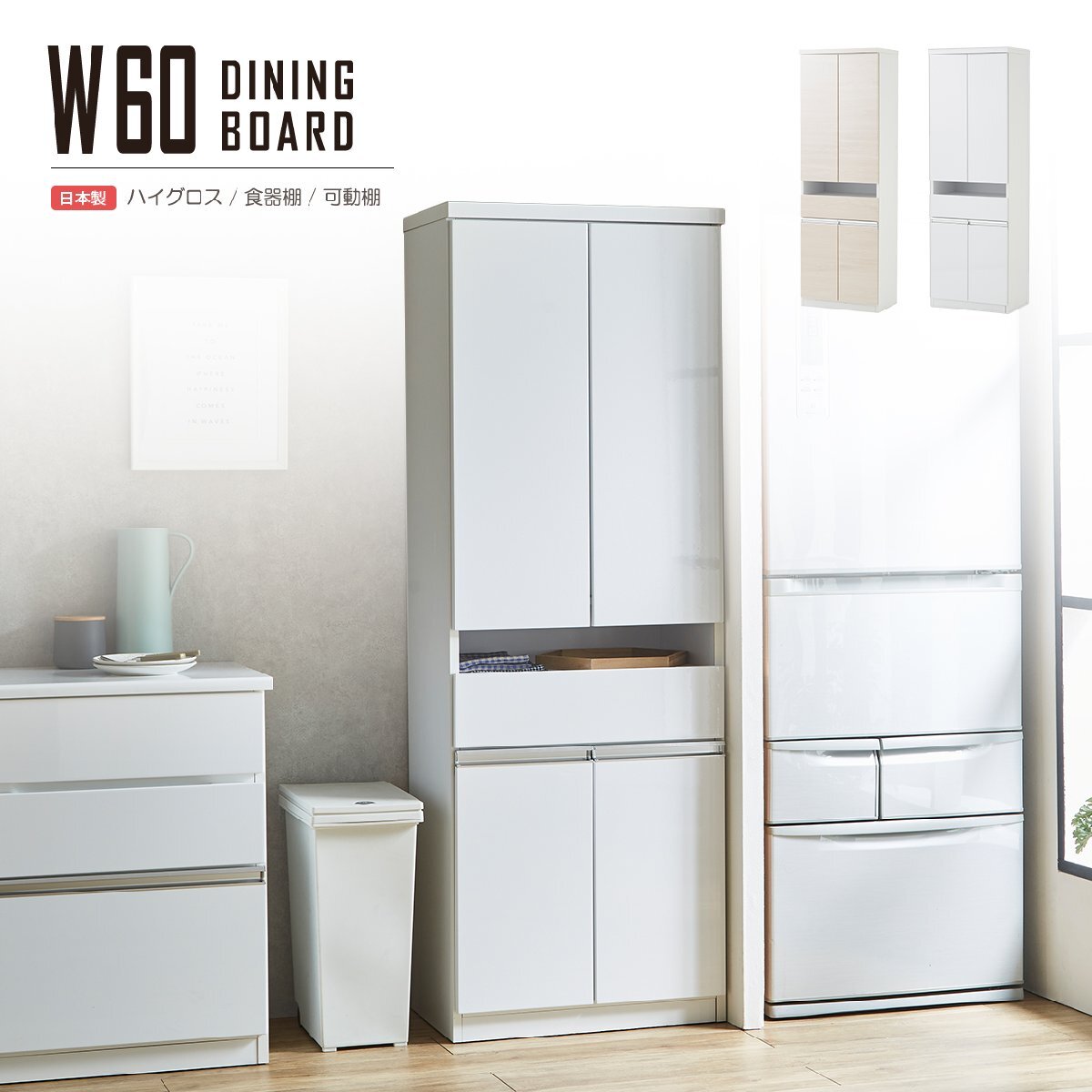 食器棚 ダイニングボード キッチンボード キッチン収納 日本製 完成品 幅60cm おしゃれ 収納 大川家具 ホワイト