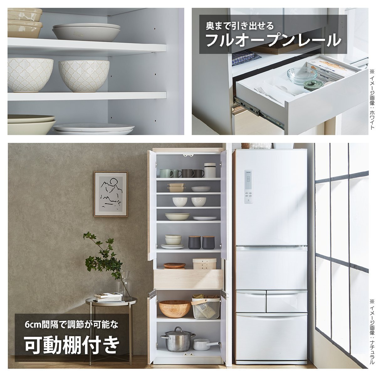 特  徴光沢のあるハイグロス仕上げで、汚れや傷に強く、お手入れが簡単。引き出しにはフルオープンレールを採用し、奥までしっかり引き出せて収納物を簡単に取り出せます。
