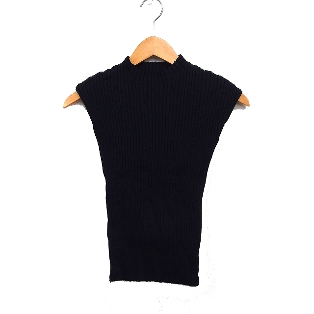 セゾンドパピヨン SAISON DE PAPILLON リブ ニット セーター ノースリーブ 無地 L ブラック 黒 /FT42 レディース