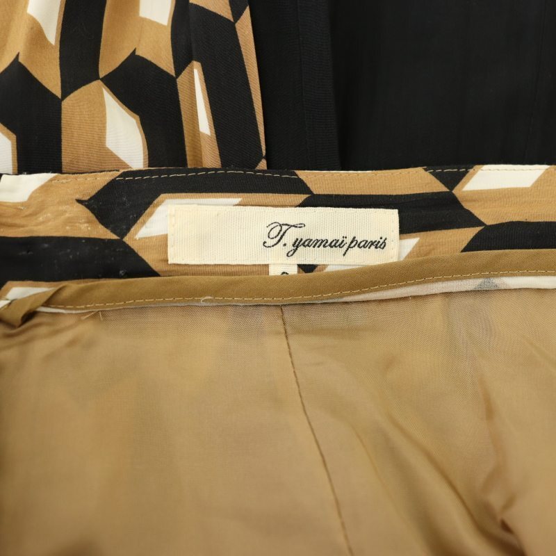 ティヤマイ t.yamai フレアスカート ひざ下丈 総柄 ベージュ 黒 ブラック /KO ■OS レディース