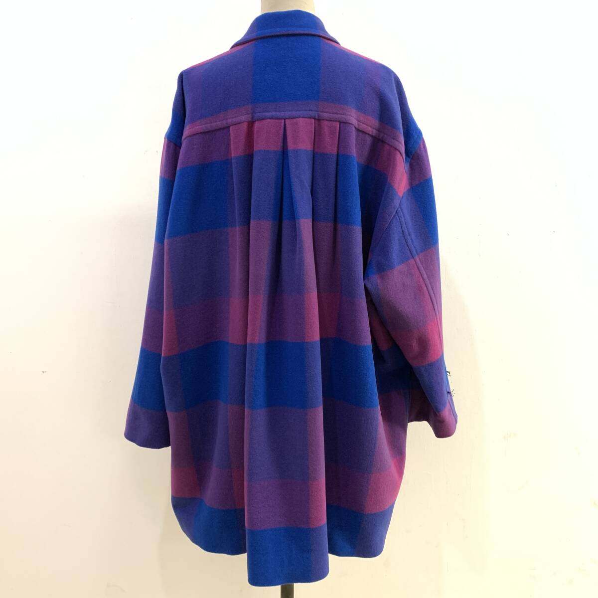 ☆CHARLES JOURDAN シャルルジョルダン 日本製 毛100% カシミヤ混 チェック柄 コート ブルー×パープル サイズ38【送料一律/同梱可能】Lの出品です。