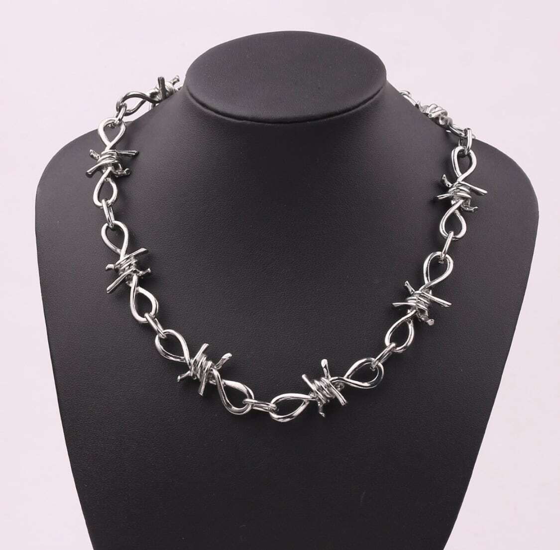 有刺鉄線 ネックレス シルバーチェーン 韓国ファッション ロック系