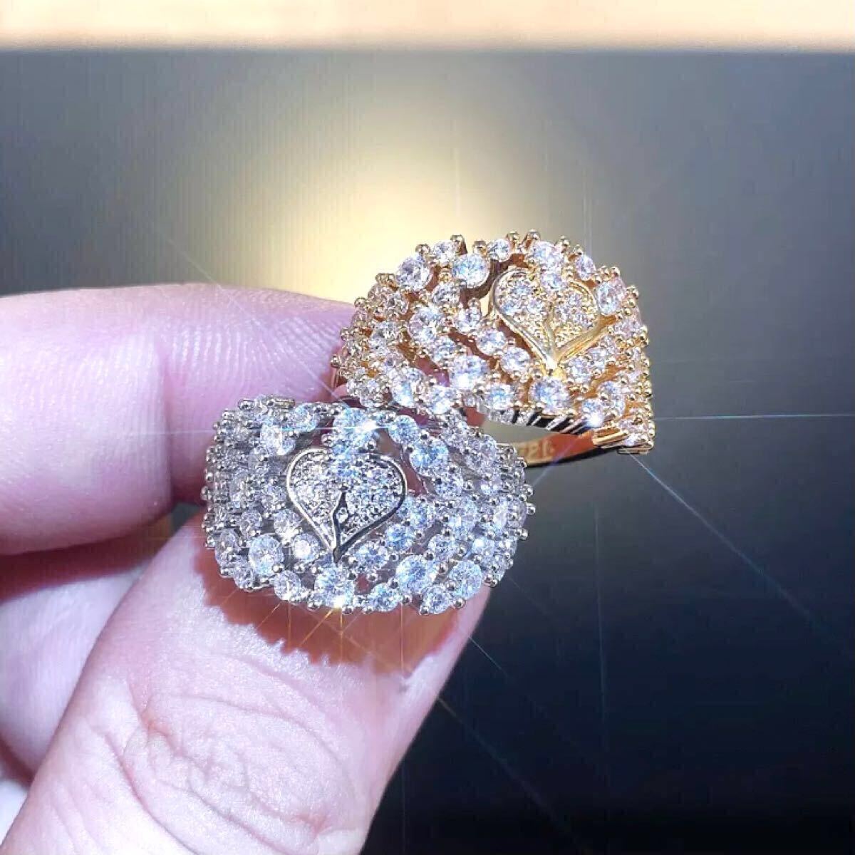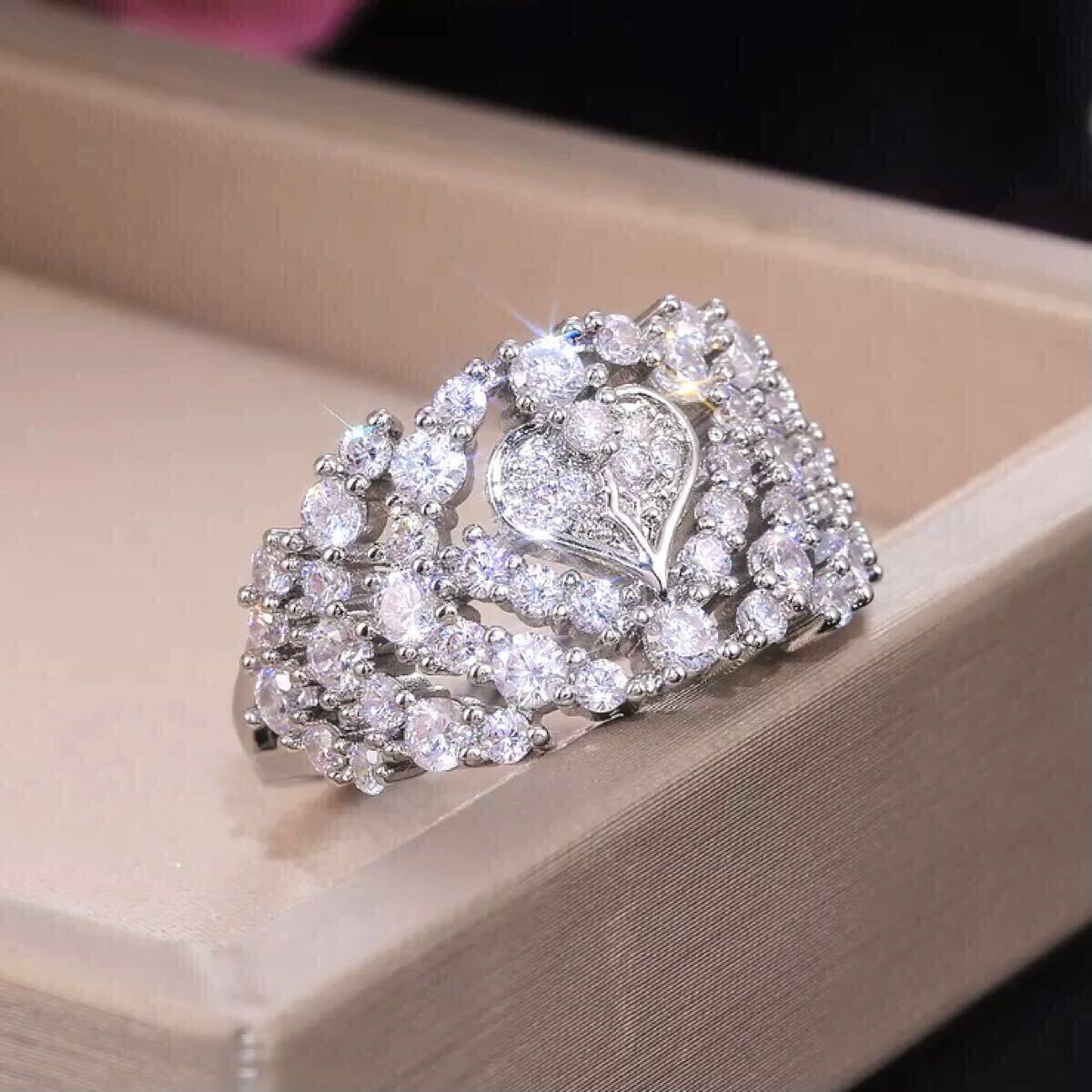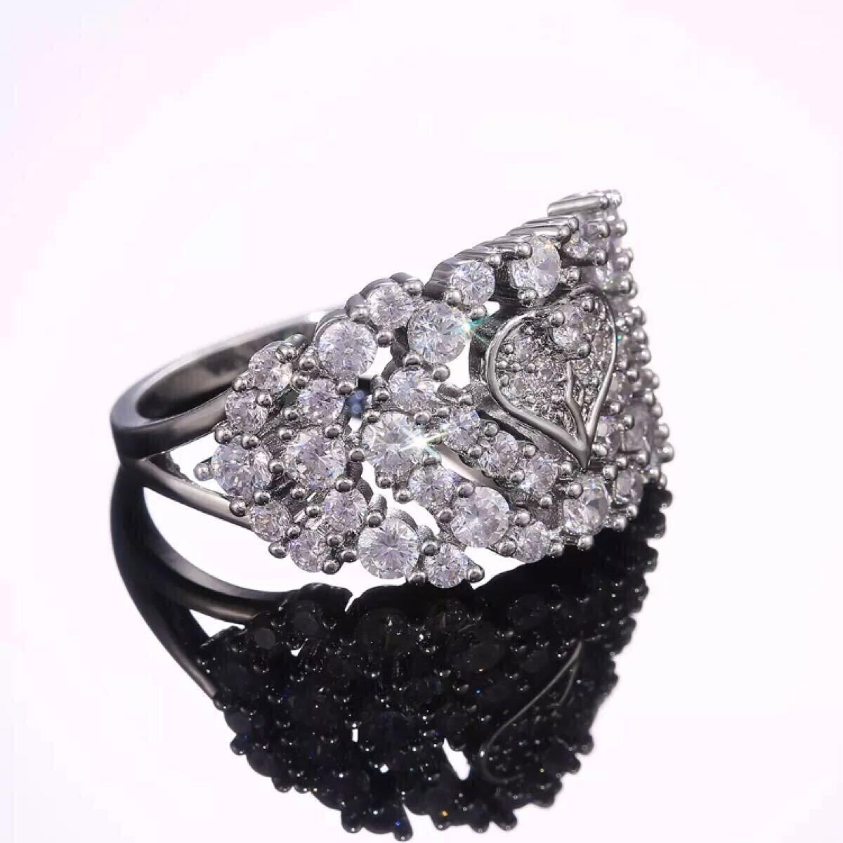 ティアラのような華やかさと、ハートのデザインが魅力のCZダイヤモンドパヴェリングです。たくさん散りばめられたAAA+CZダイヤモンドが視線を集めてくれます。