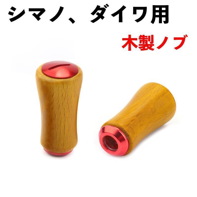 YU259 蓋赤色 木製ノブ パワー リール ハンドル ノブ シマノ ダイワ適用 ベイトリール 対応 釣りリール ハンドル ボール 交換用 ねじ付き
