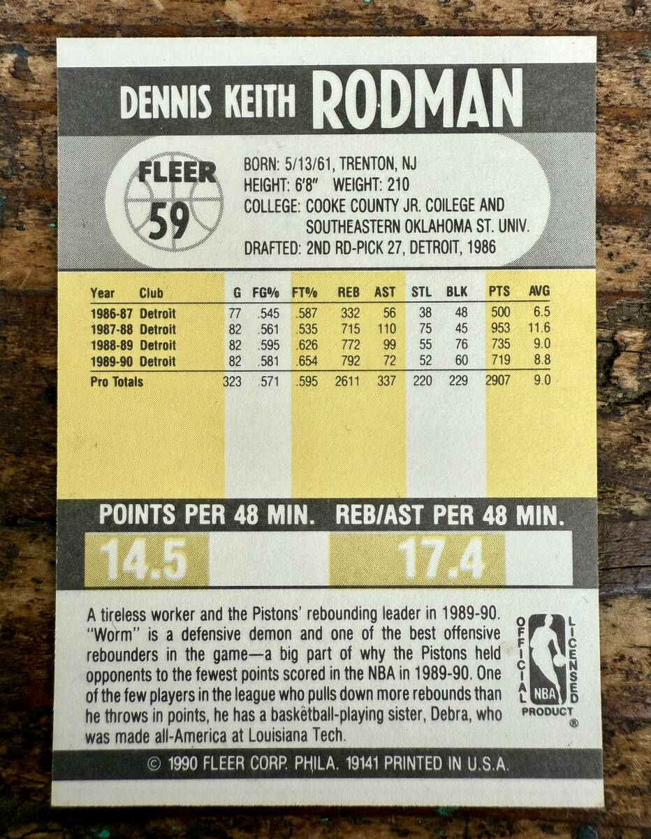 ★1990★FLEER★DENNIS RODMAN★DETROIT PISTONS★デニスロッドマン★ピストンズ★#59★NBA★バスケ★トレカ★