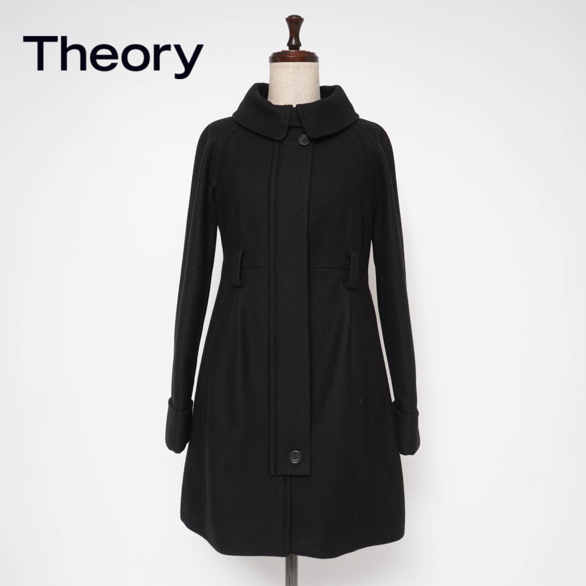 美品 theory セオリー ウール混 メルトンコート レディース ブラック 黒 サイズP*YC736