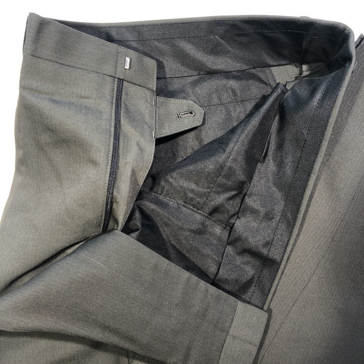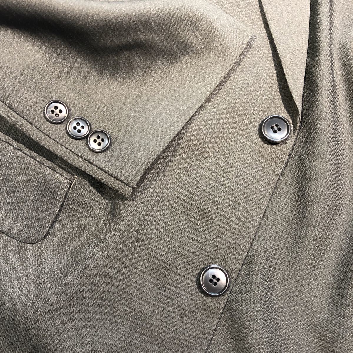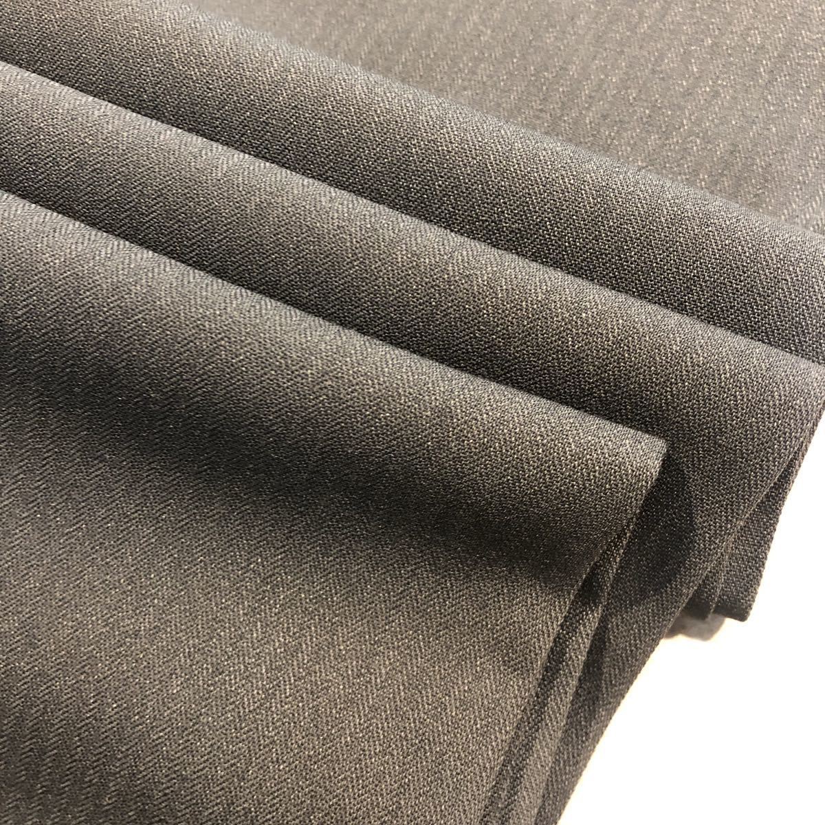 お色は人気のグレー。とてもキレイな色目に仕上がっています。これからの季節はジャケットのみスラックスのみでコーディネートしても良いと思います。生地はふわさらですが、とても丈夫で大事に着用頂ければ軽く5年は持ちます。