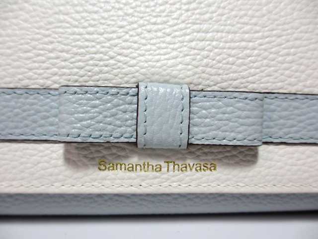 送料無料 52%引 サマンサタバサ リボン 牛革 かぶせ 長財布 バイカラー ライトブルー ホワイト 新品 証明書付 エムシュシュ