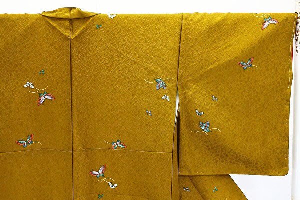 〔着物の色〕 芥子色 〔八掛の色〕 赤 〔着物の素材〕 正絹 (胴裏化繊) |
