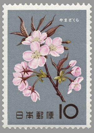 1961年(昭和36年)発行の、「花シリーズ切手 やまざくら 10円」です。