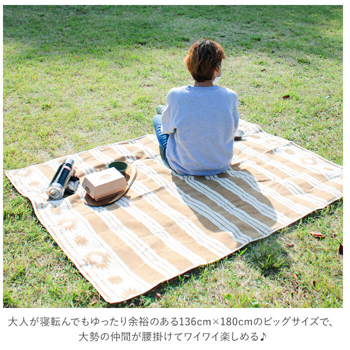 商品説明 | ・アメリカンビンテージな雰囲気が大人気のMERCURYから、レジャーに便利な「コットンピクニックシート」が新登場。 ・シートの表生地は、レジャーシートでは珍しいコットンキャンバス素材。ナチュラルな生地感がアウトドアのグリーンに素敵にマッチ♪ ・裏面はポリエチレンコーティング加工を施してあるため、前日の雨や朝露に濡れた芝生の上でもお尻が冷たくならないのが嬉しいポイント。 ・大人が寝転んでもゆったり余裕のある136cm×180cmのビッグサイズで、大勢の仲間が腰掛けてワイワイ楽しめる♪ ・付属のコットンバッグに折りたたんだシートをぴったり収納できるから、持ち運びにもとっても便利。 ・お花見やピクニック、ハイキングのようなアウトドアイベントではもちろん、お子さまの運動会の応援などにも大活躍! |