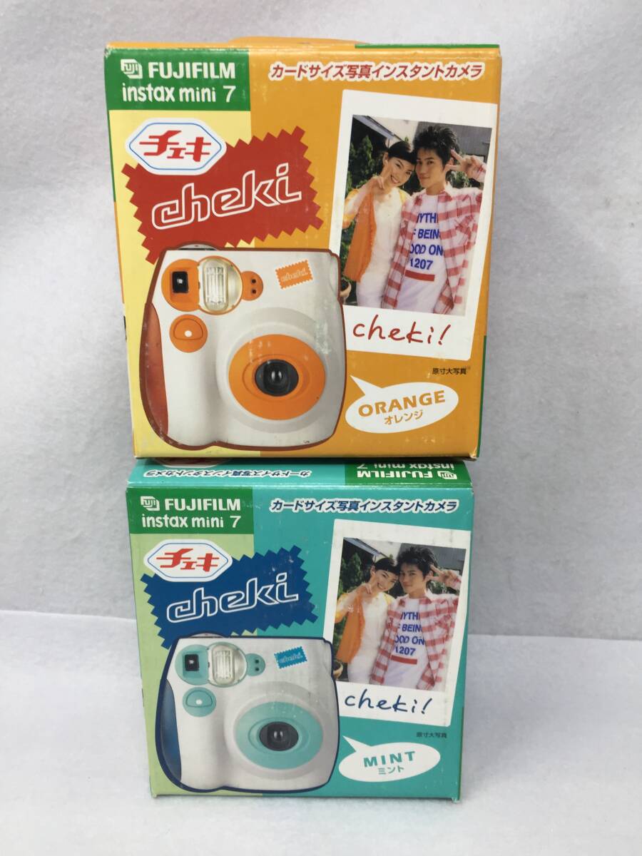 QY-106 未使用 FUJIFILM フジフィルム instax mini7 チェキ本体 ミント オレンジ 2台セット インスタントカメラ 当時物