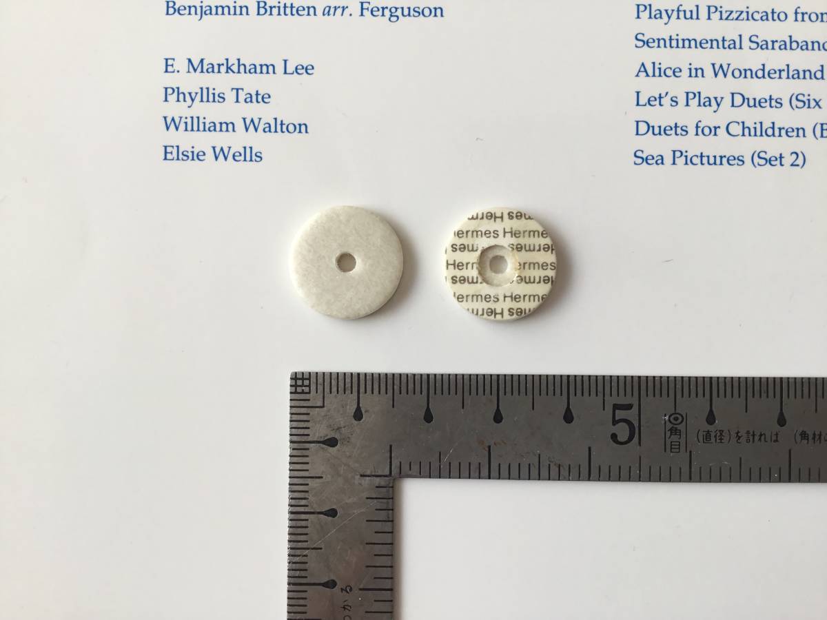 | 商品説明 | 品名:Hermes フルート用タンポ 16mmΦ 厚み:2.2mm、穴:3mmΦ フィッシュスキン白 複数所有しております。落札価格および送料は1個の価格です。 複数ご希望の場合は、数量を入力ください。 やや個体差がありますが手前から出荷させて頂きます。 掲載写真の個体とは限りませんが、同じ規格の製品1個です。 状態:未使用、家庭保管品 | |