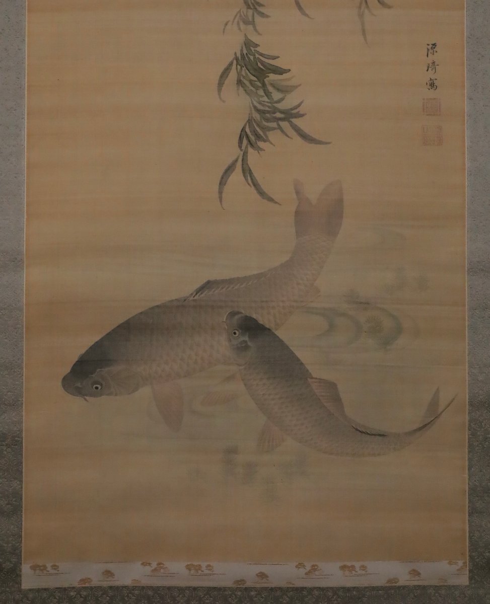 【模写】吉】11982 駒井源琦 鯉図 円山応挙師事 円山派 江戸後期 中国画 古画 掛軸 掛け軸 骨董品