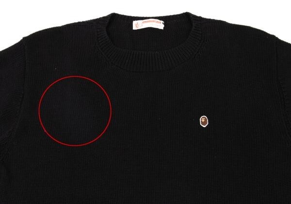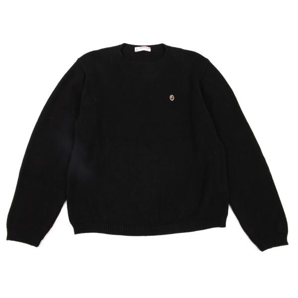 アベイシングエイプA BATHING APE コットンワッペンワンポイントニットセーター 黒XL |