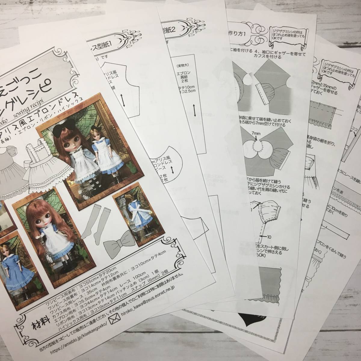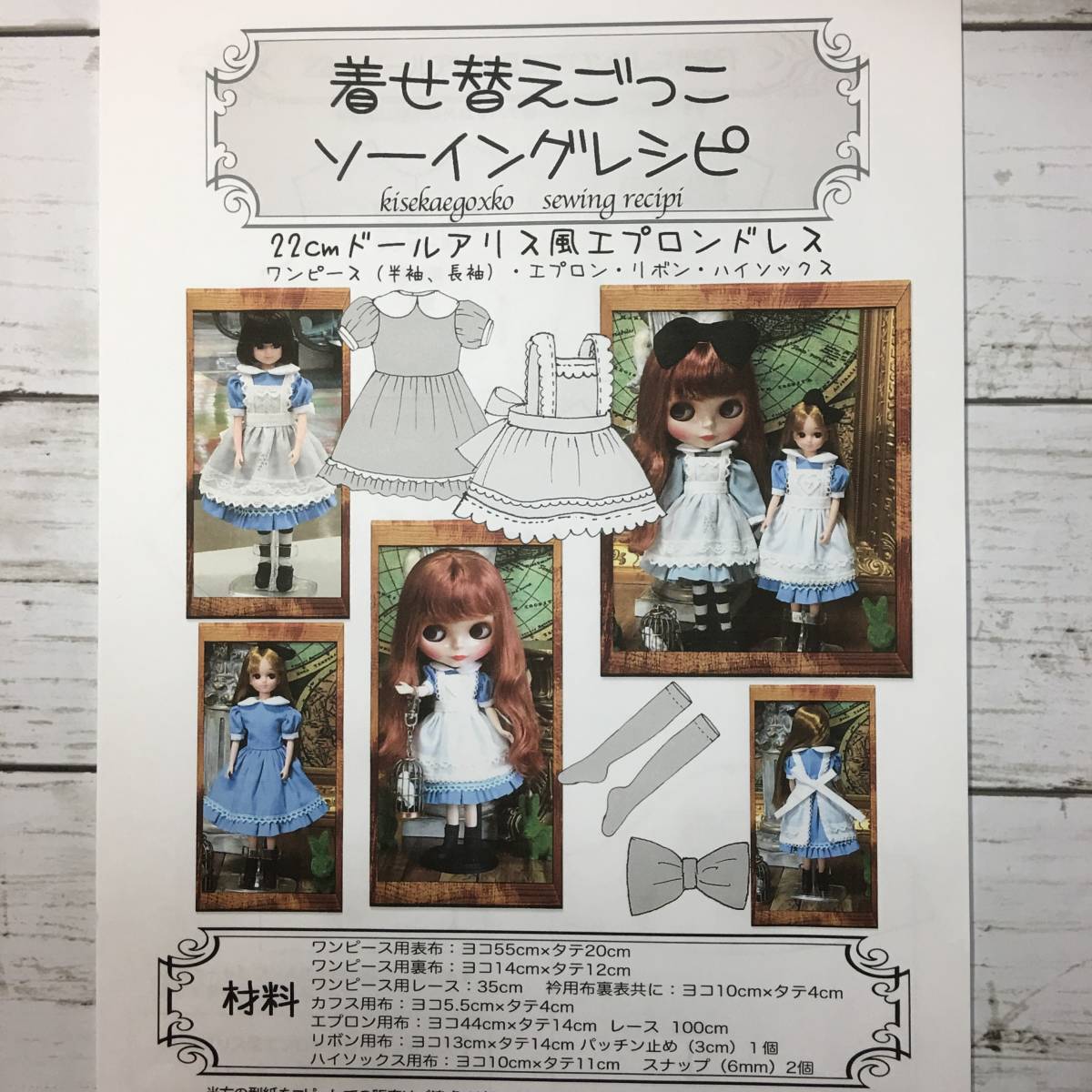 22cmドール<アリス風エプロンドレスセット>型紙と作り方 ソーイングレシピ 難易度★★★