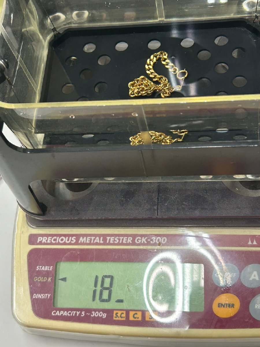 ※こちらは一般のお客様から買取をした中古商品です。 【状態】 使用感、擦れや擦り傷などが見受けられます。 (※掲載写真をご参考下さいませ。) 【サイズ】 総重量:約14.9g 長さ:約18cm 幅:約4.95mm 造幣局検定マーク 刻印 ※こちらの商品は銀行振込・コンビニ決済には対応していません。 銀行振込・コンビニ決済でのご注文の場合はキャンセルになります。ご了承下さいませ。 | |||||||