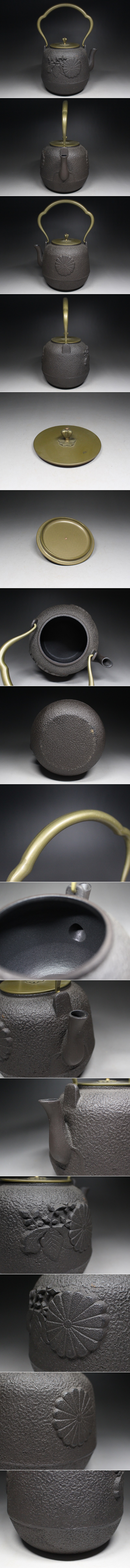| ■鉄瓶■菊紋盛上彫・岩肌地・銅蓋・銅持手・鐵瓶・湯沸・茶器・煎茶道具・f5166h | ||||||||||||||||||||