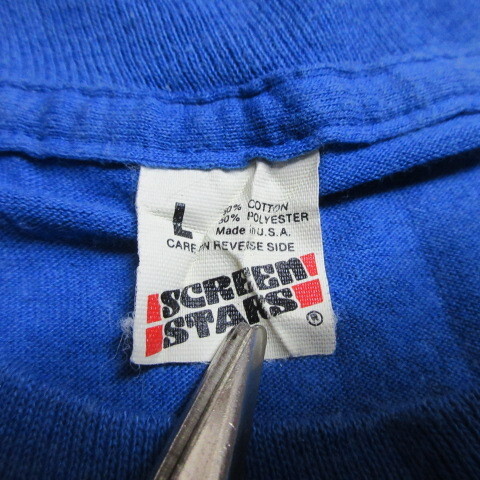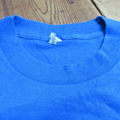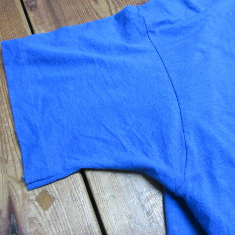 ★Size ML (表記 L)肩幅 49cm, 身幅 50cm , 着丈 65cm,袖丈 19cm★Goodsアメリカ古着 80s頃の Tシャツですバックプリントはありません★Condition 10/7目立つダメージはありません★Material cotton POLY混合★Color 青★Made in USAご覧いただきありがとうございます。広島の古着屋ジョージアです。ヤフオクさんや、ヤフーショッピングさんで、30年前の在庫の オールドTシャツを、格安価格で どんどん出品中です。どうぞご覧ください。クリックポストでの同梱は出来ませんが、レターパックプラス、ヤマト便での同梱が出来ます