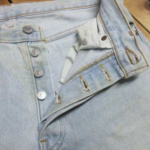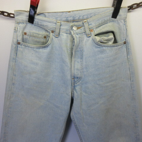 ★Size w31(表記w31 )ウエスト 39cm(78cm)股上 29cm , 股下 78cm ,裾幅 20cm,全長105cm 渡り30cm★Goodsアメカジ古着 1993年製 リーバイス ジーンズ人気501 前ボタン 刻印520★Condition 10/5全体に薄汚れあり裾に補修跡 裾上げ★Material COTTON★Color ブルー★Made in USA