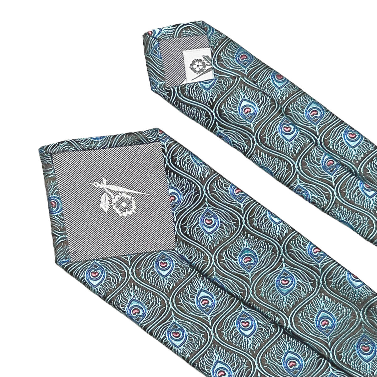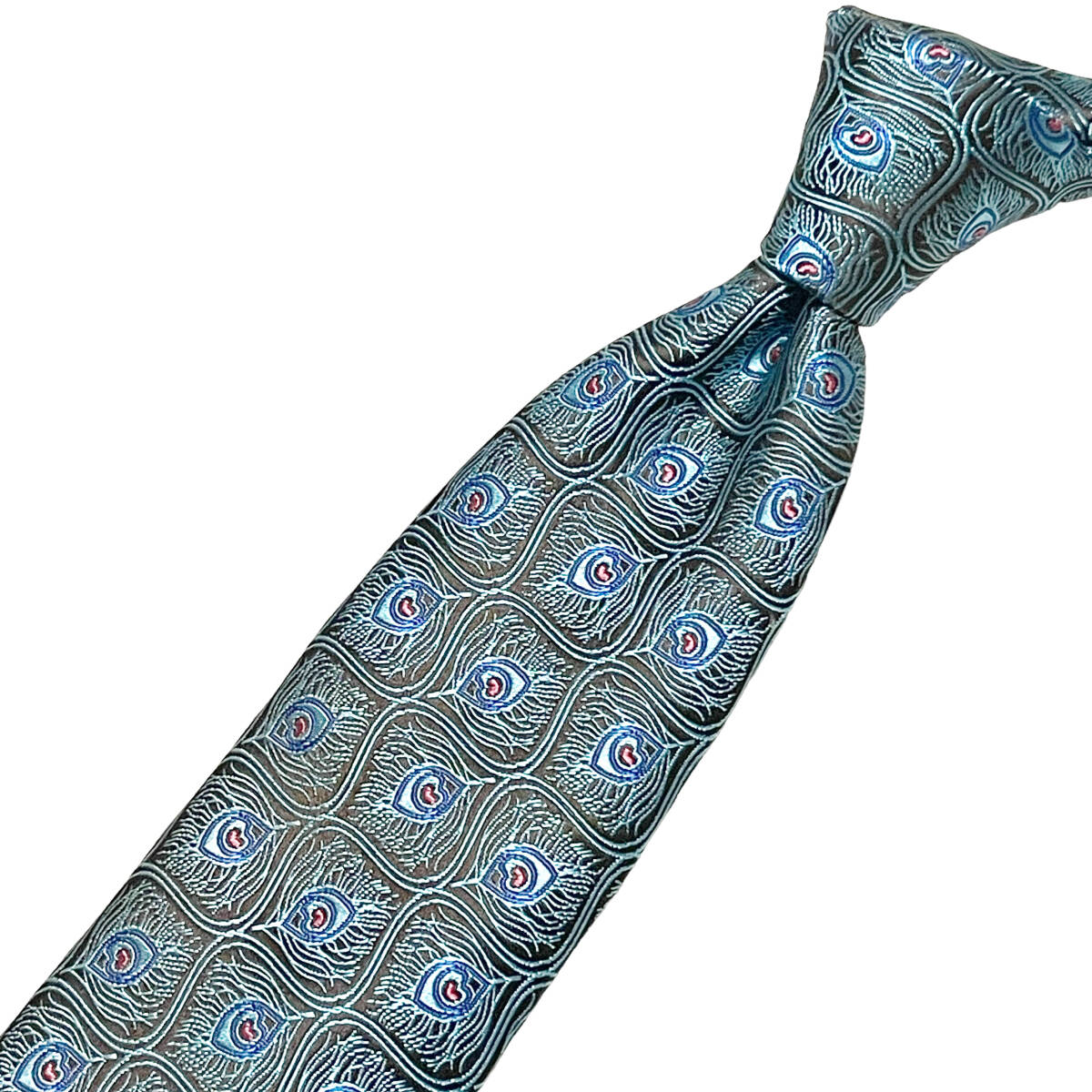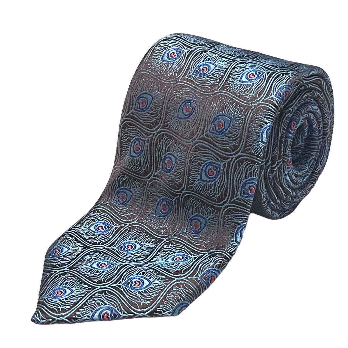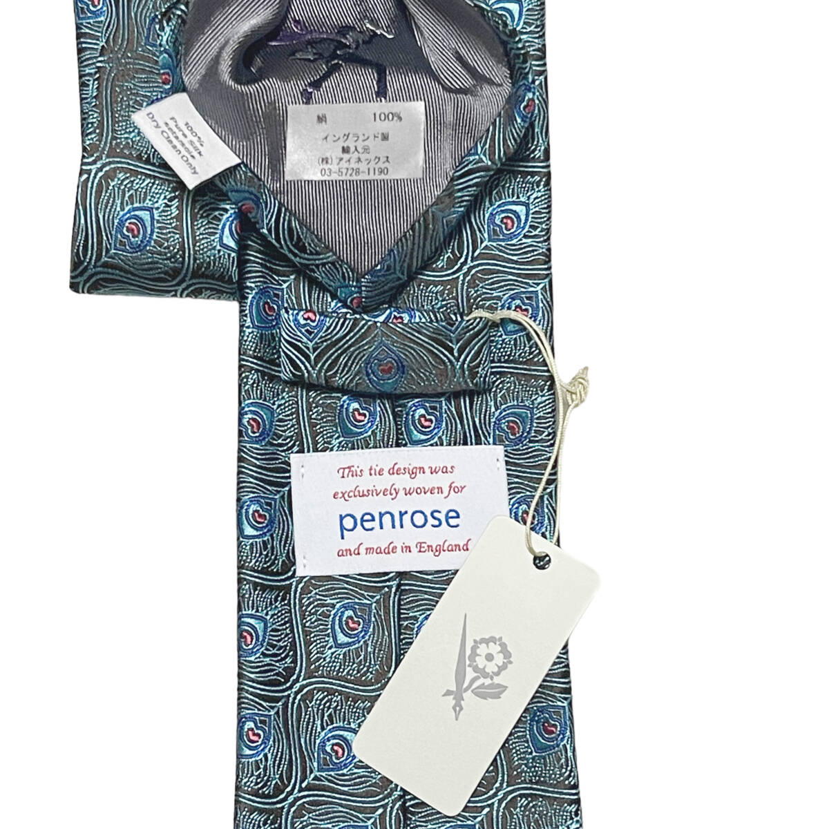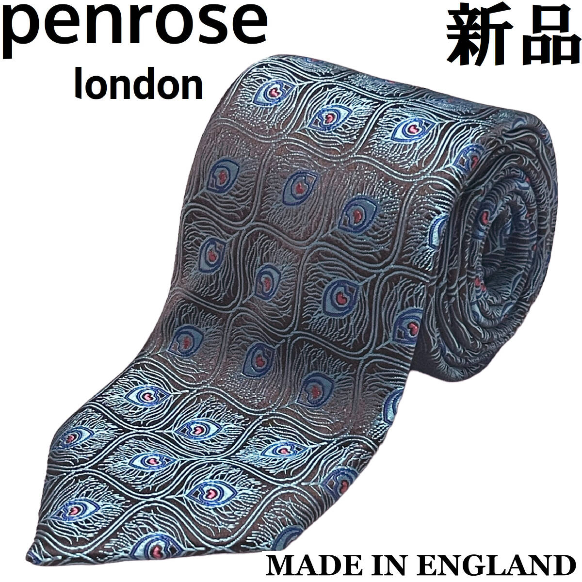【新品◆英国製◆リッチな光沢感】Penrose ペンローズ シルク ネクタイ フェザー柄 ダークブラウン サックスブルー 焦げ茶 水色 37