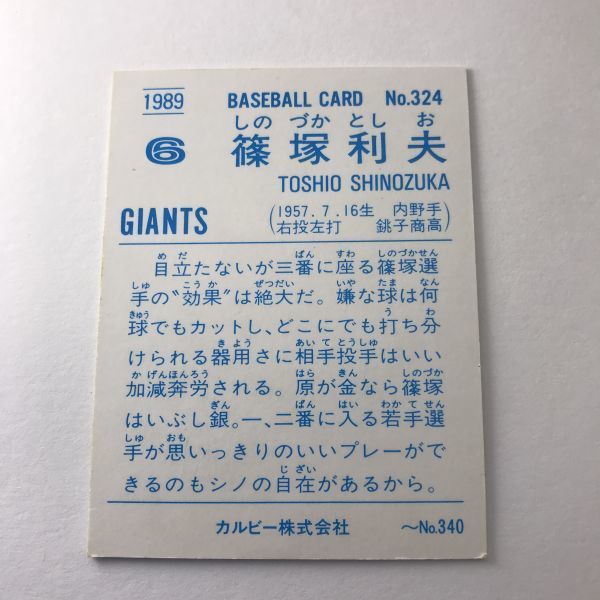 1989年 カルビー プロ野球カード 324番 巨人 篠塚 89年   【管理NO:202-07】