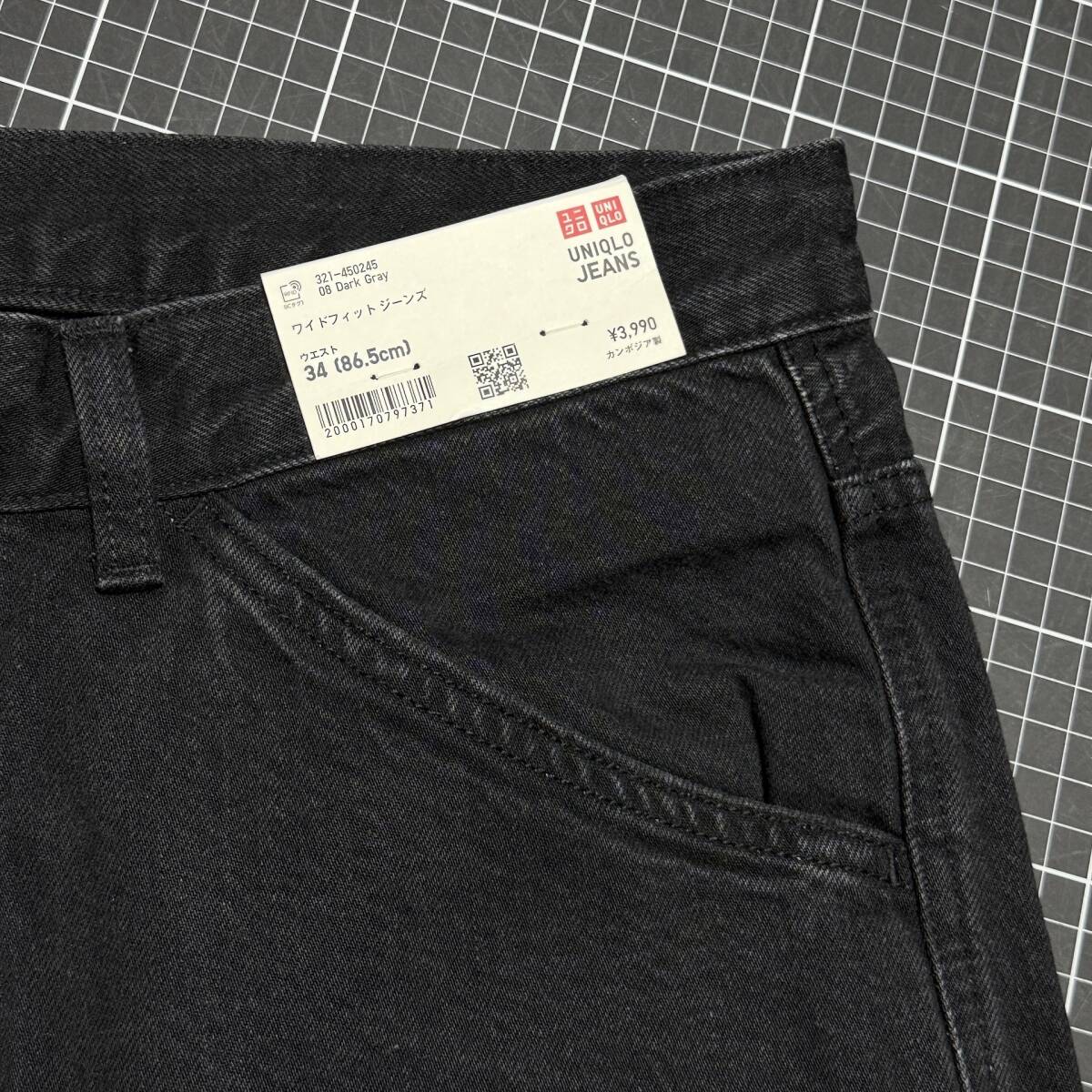 ユニクロ『ブラック・ジーンズ』W34・デニム パンツ ワイドフィット テーパード