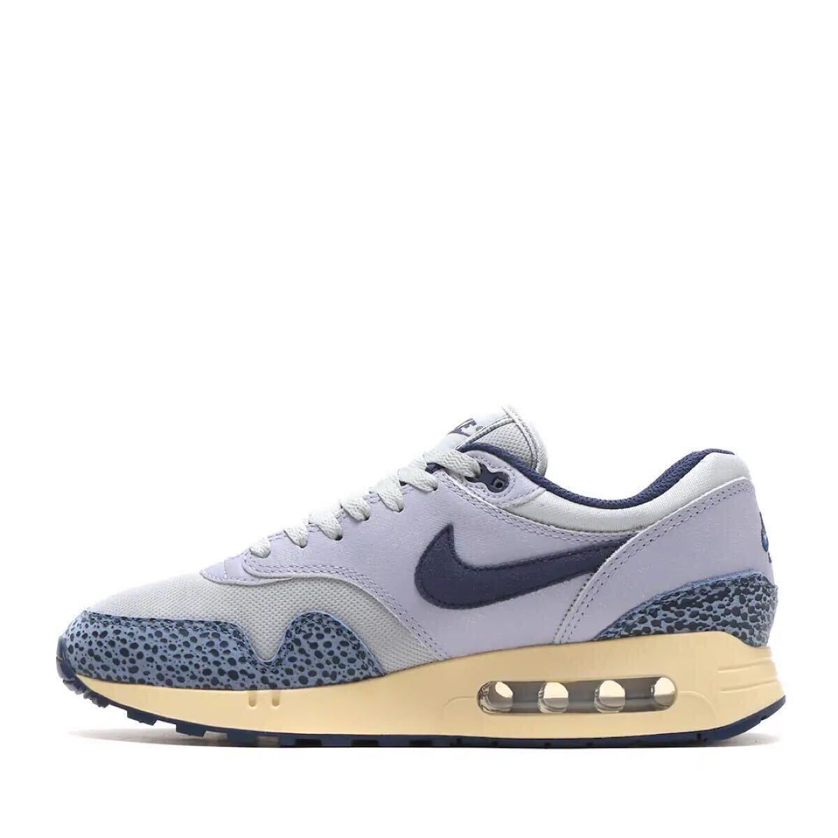 1987年にランニングシューズに革新をもたらした、"AIR MAX 1(エアマックス1)"。ソール内部に隠れていた"AIR(エア)"に光をあて、そのクッショニングの性能をアピールすることに成功した。いまでは"NIKE(ナイキ)"のイノベーションの核心となり、膨大な数のモデルへと進化を遂げている。その起源でもある"AM1"より、最初期にリリースされた通称"BIG BUBBLE(ビッグ バブル)"が現代のテクノロジーで蘇った。当時はヴィジブルエアが大きすぎ、亀裂が入る問題が確認され、急遽、小さいバージョンへ差し替えて販売したそうだ。今回はその"ビッグバブル"をベースに選ばれ、"AIR MAX 1"の生みの親である"ティンカー"が、同時期に考案した"SAFARI(サファリ)"を組み合わせた。アッパーはライトグレーベースのメッシュパネルを使い、その上にブルーのテクスタイルを重ね、スウッシュはネイビーのスウェード素材を配置。そして全体のカラーパレットを統一することで、一層引き立つスタイリッシュなビジュアルを実現している。大きなエアが覗くミッドソールはヴィンテージライクなクリームカラーで彩色。"AIR"の手書きのロゴもユニークさを際立たせる。