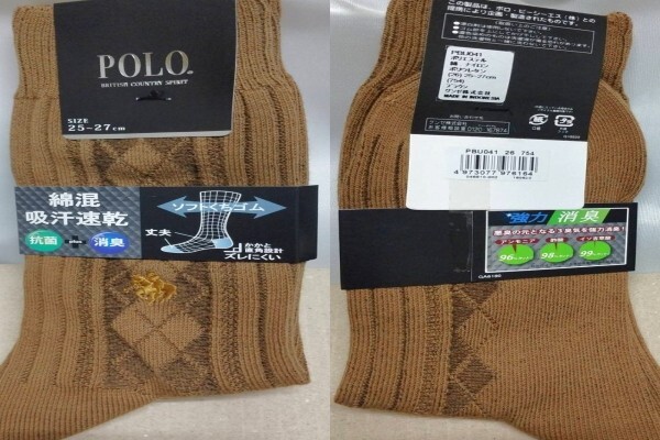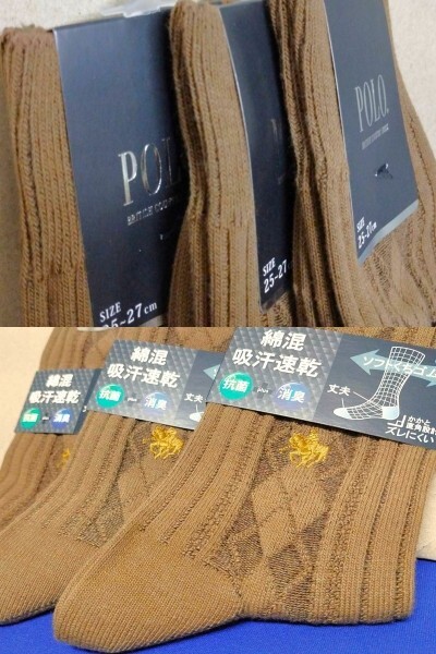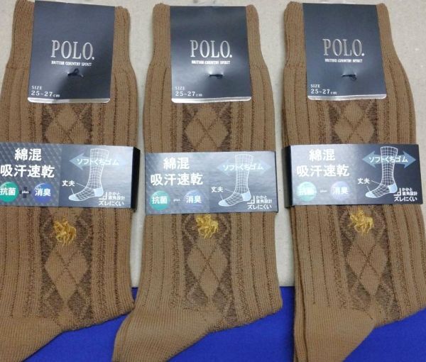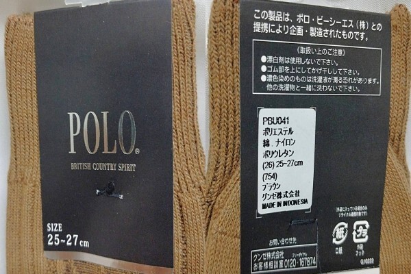 7b)3足)茶 25-27cm)グンゼ★POLO ソックス 靴下 綿混 吸汗速乾 抗菌 消臭 ソフトくちゴム かかとズレにくい ポロ PBU041★新品送料込