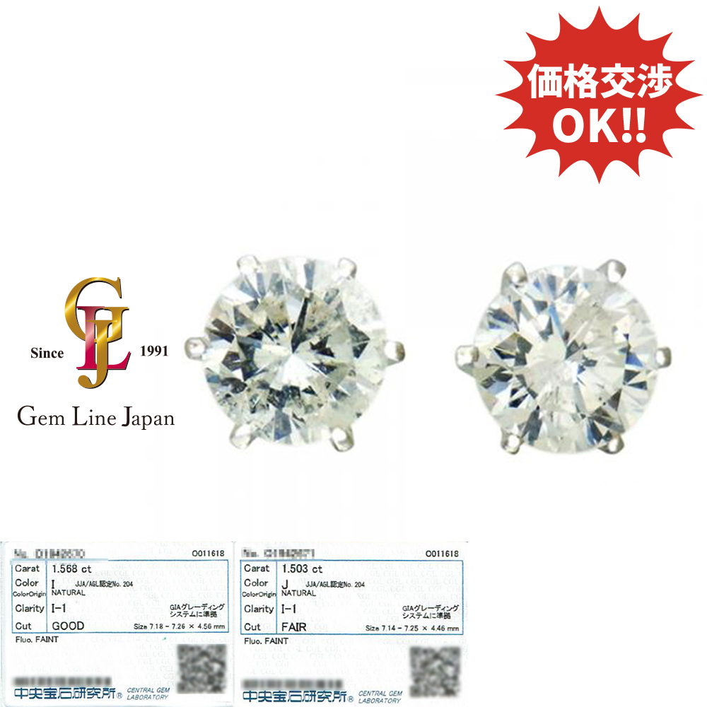 商品名 | 中宝研ソーティング付 トータル 3ctUP ダイヤモンド 1.568ct 1.503ct プラチナ ピアス |