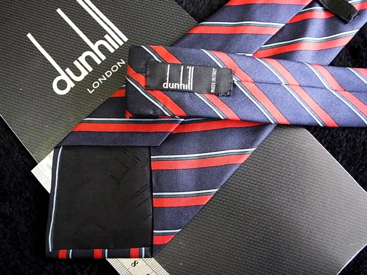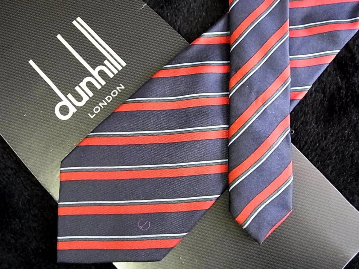 ○E3240N●USED並●【dunhill】ダンヒル【ロゴ ストライプ】 ネクタイ★