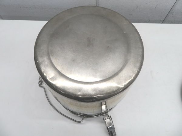 ◆ステンレス製◆汁食缶 27cm サイズ(内径×深さ):27×27cm 出品にあたりクリーニング済みです。 多少の傷・汚れ・使用感等がありますので、予めご了承ください。 画像をよくご確認の上、ご理解頂ける方のご入札をお願いいたします。 神経質な方はご入札をご遠慮ください。 気持ちの良いお取り引きにしたいと思いますので、ご不明な点等ございましたらお気軽にご質問ください。 | |