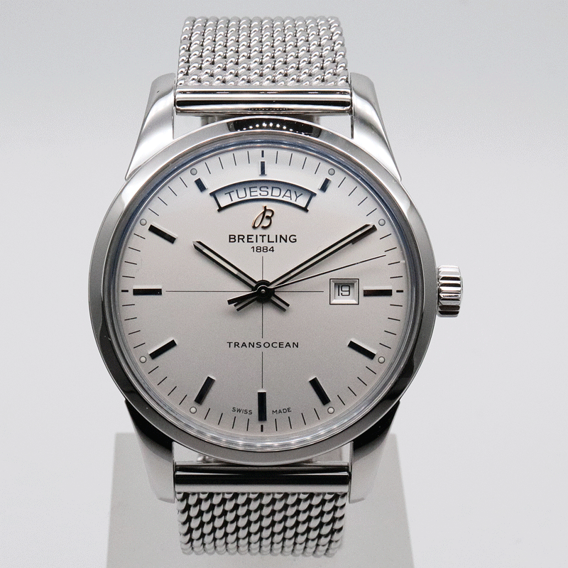 BREITLING ブライトリング A45310 トランスオーシャン デイデイト シルバー 自動巻 新品仕上げ済 美品 正規店購入品 腕時計 送料無料!!
