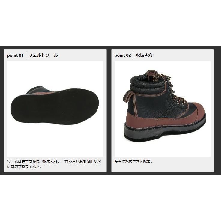 ストッキングウェダー用ウェーディングシューズ。ストッキングウェダーを着用して履くために、通常のシューズより大きめの設計。水抜き穴で排水性を確保し、フィット感と履き心地を追求。ワイドフェルトソールを採用し、安定感のあるウェーディングシューズ。●サイズ:M●靴の実寸(cm):27~27.5●あなたの足サイズ(cm):25~25.5●底:フェルト※普段お使いのサイズをお選びください。(例:普段のシューズ→Lサイズ(26~26.5cm) ウェーディングシューズ(フェルト底)→Lサイズ) ★複数在庫あります。4548992215737 |