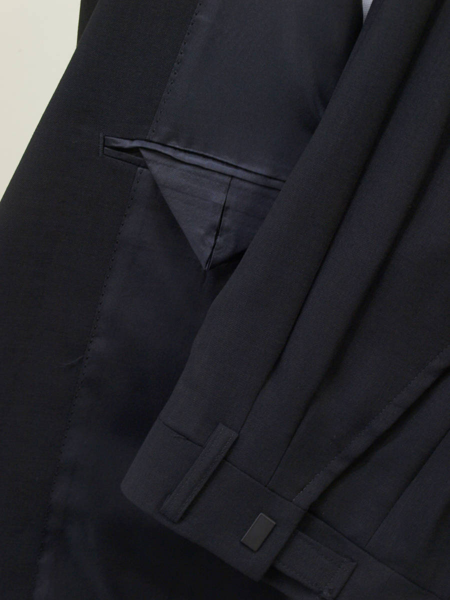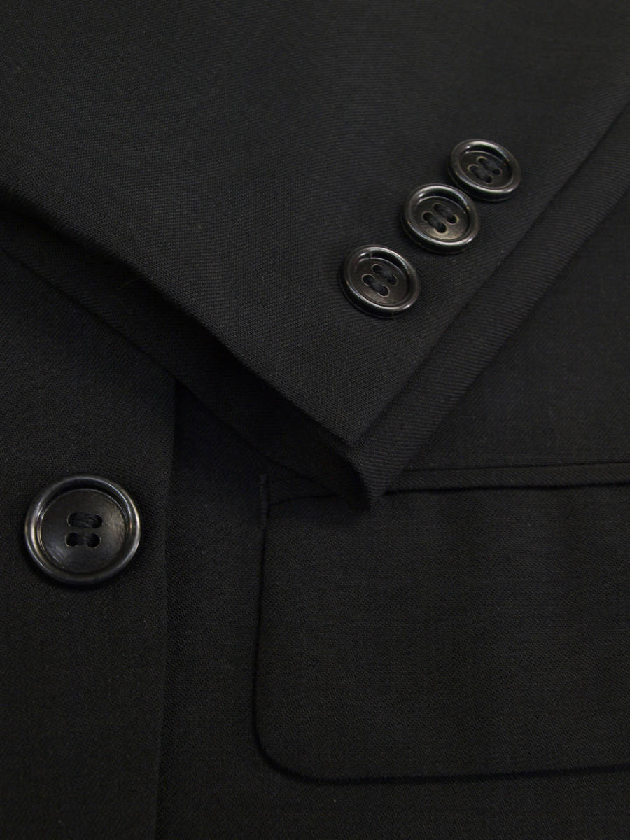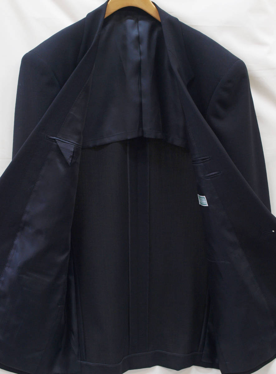 【表示サイズ】 T1 (Y8~Y9号相当) 目安の体型 身長185cm~195cm、ウエストサイズ70cm~82cm前後(アジャスターにて可動) (大体の目安ですが、身長が高く細い方でY8~Y9号をご着用の方向けになります。詳しくは実寸をご参照下さい。) 【ジャケット実寸】 肩幅50cm 着丈83.5cm 袖丈65cm 脇下部分56cm 身幅52cm 【パンツ実寸】 ウエスト(胴回り実寸)最小70cm~最大82cm わたり幅36cm 裾幅22.6cm 脇股上29cm 股下98cm(裾上げしていない状態/新品) 【デザイン】 ・ゆったりとした着心地のシングル2つボタン、ブラックフォーマルスーツ、新品、裾上げしていない状態です。 ・ジャケットはシングル2釦 ・パンツはウエストアジャスターが付いたゆったりとしたシルエットの2タックスラックスです。 【仕様】 ・ジャケットはシングル2ボタン、ノッチドラペル、袖口ボタン3つ、ノーベント、内ポケット3つ(小ポケット1つ含む)、背抜き(春夏物) ・パンツはツータック、膝裏当て付き、脇ポケット斜め付け、後ろポケット左のみボタン付き、フロントはファスナーでホック仕様、スライドアジャスター付き きちんとした縫製仕様の礼服、フォーマルスーツです。 【素材】 表地:ウール81% ポリエステル16% キュプラ3% 裏地:胴裏/ポリエステル100% 袖裏/ポリエステル100% 【色】 黒色 【柄】 無地 ・適度な厚みの春夏向け紳士礼服スーツ/ブラックフォーマル素材を使用。